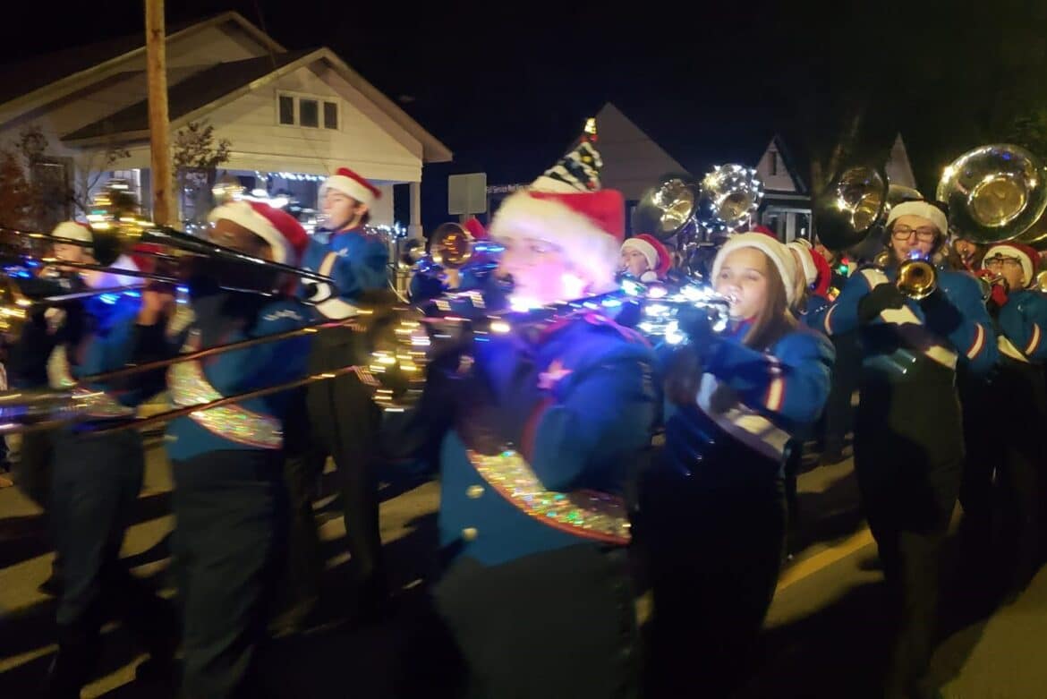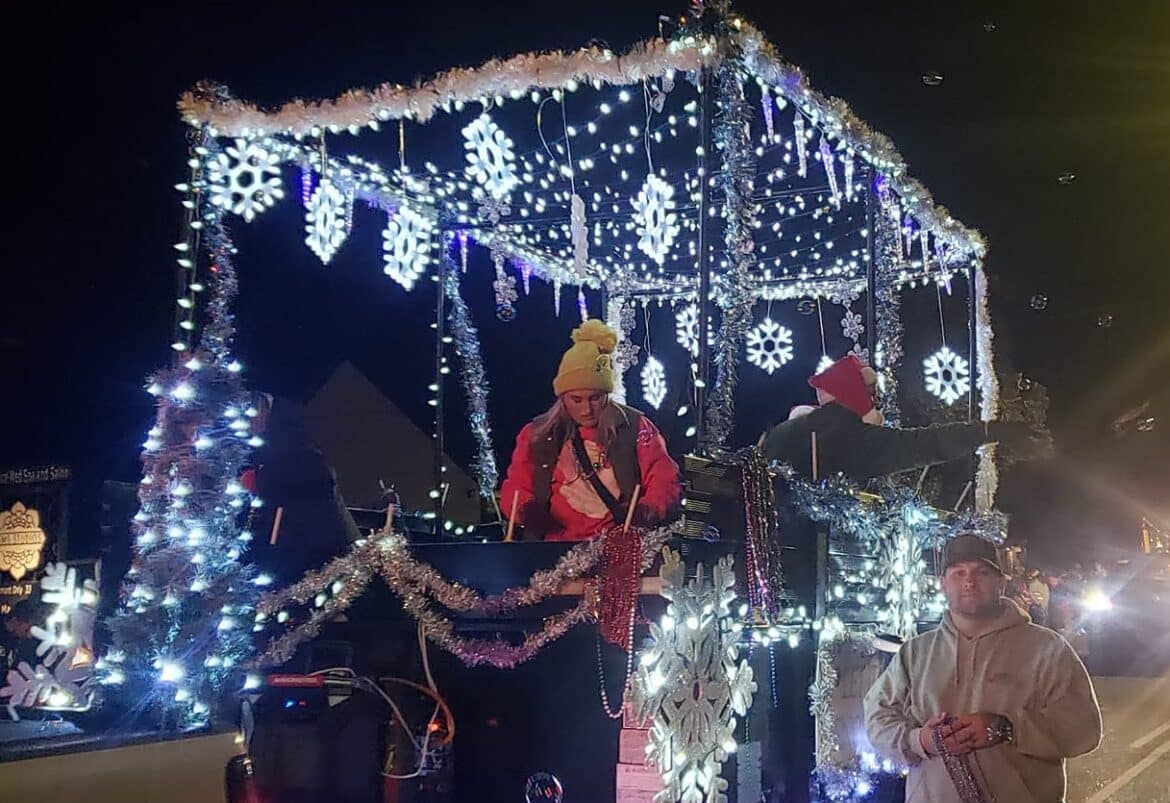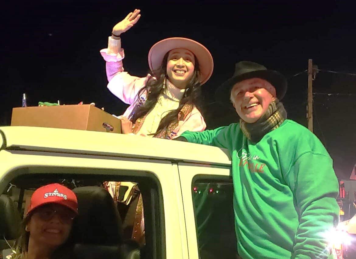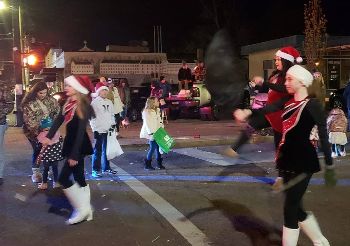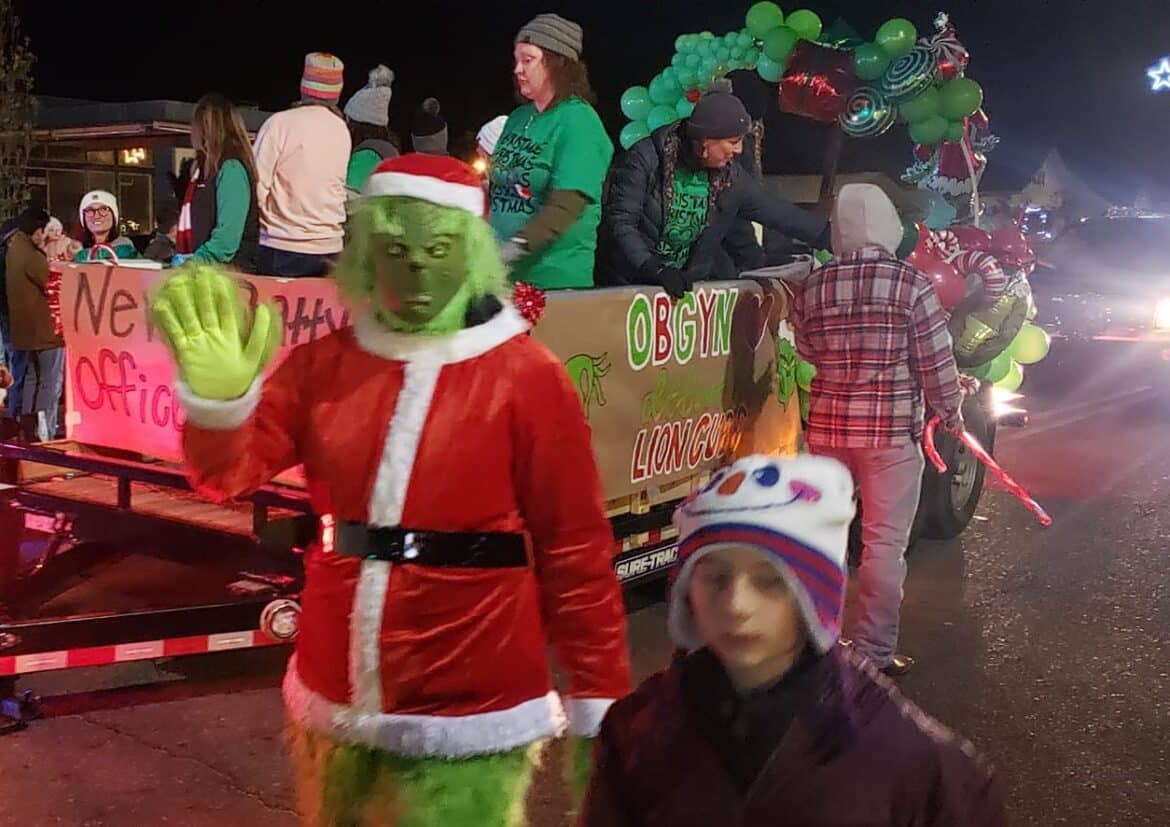 Traditionally, Santa and Mrs. Claus are at the end of the parade, but due to cold temperatures they made their appearance not far behind Grand Marshal Yee Yan Yankee” McKinnon. This was a way for families with small children to see the famous couple early, in case they needed to make an exit to warmer temperatures.
