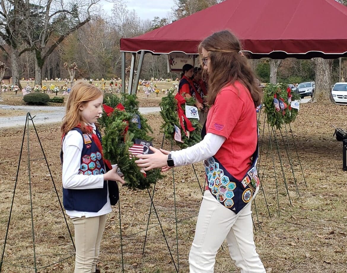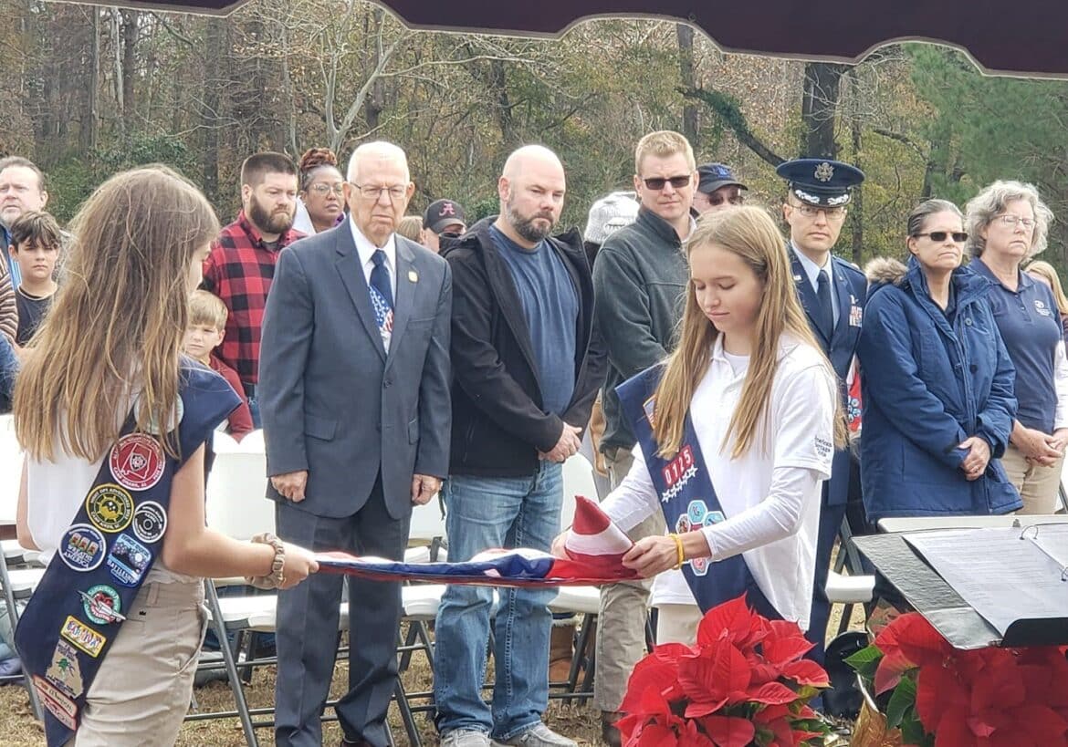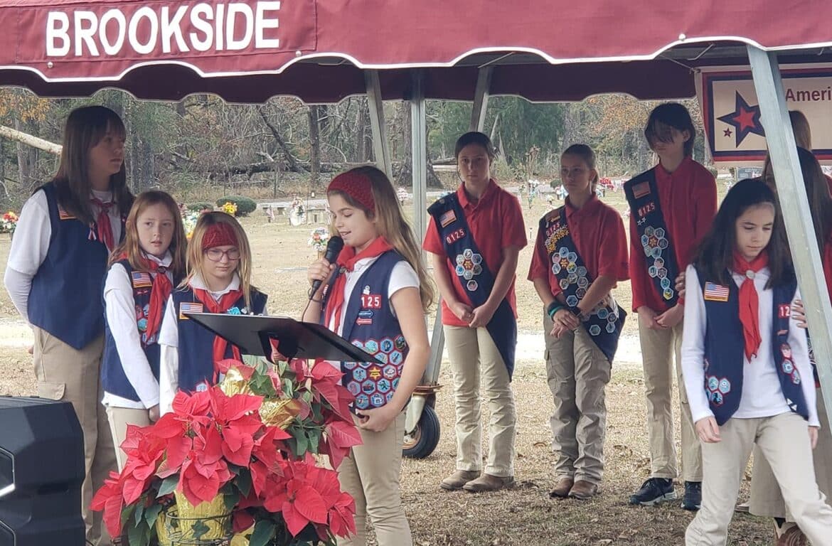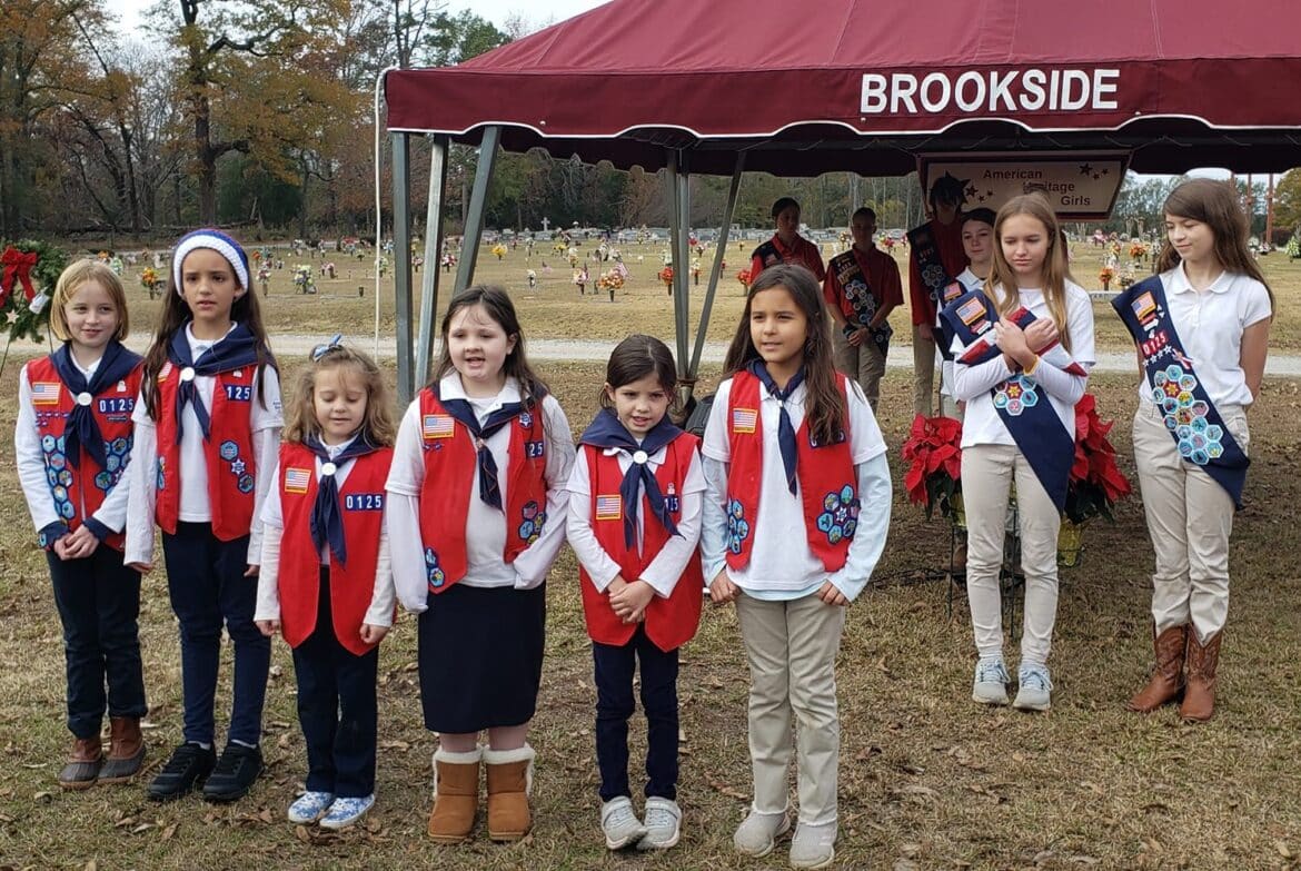This morning, American Heritage Girls from Troop AL-0125 joined with veterans, officials and families to pay honor and remembrance to Veterans who served their country but have since passed away.