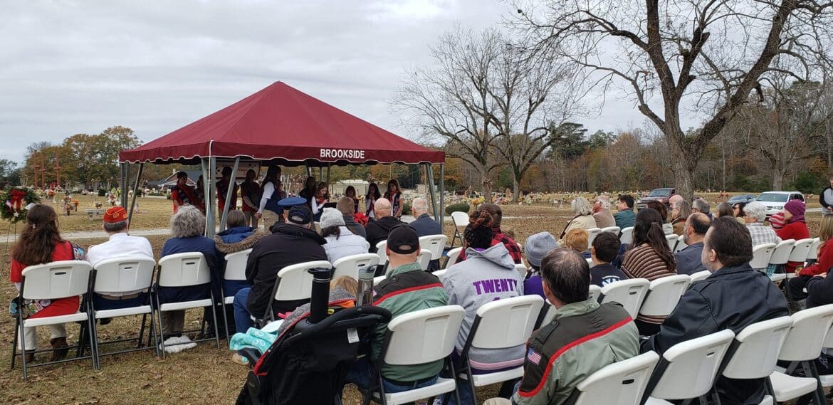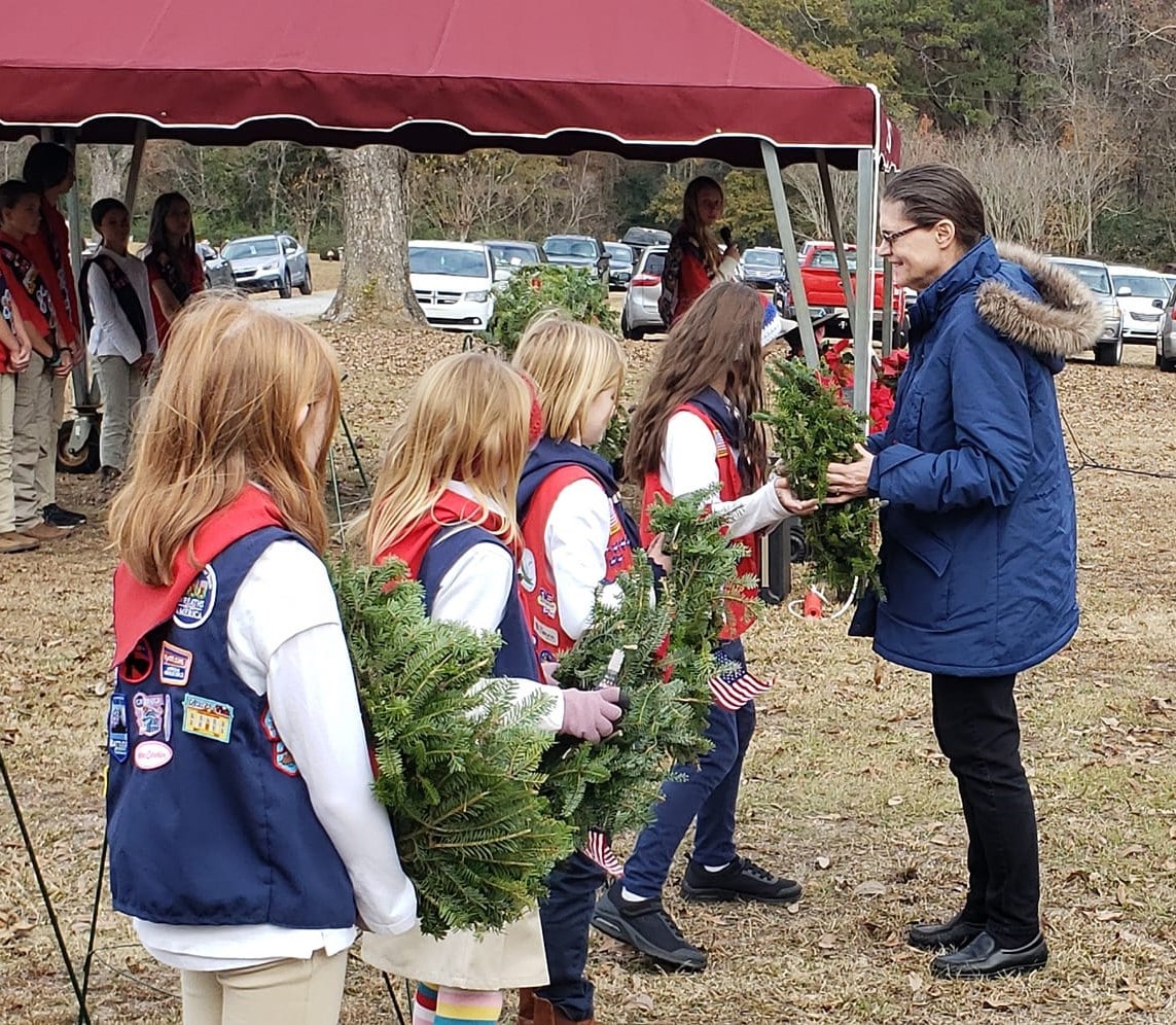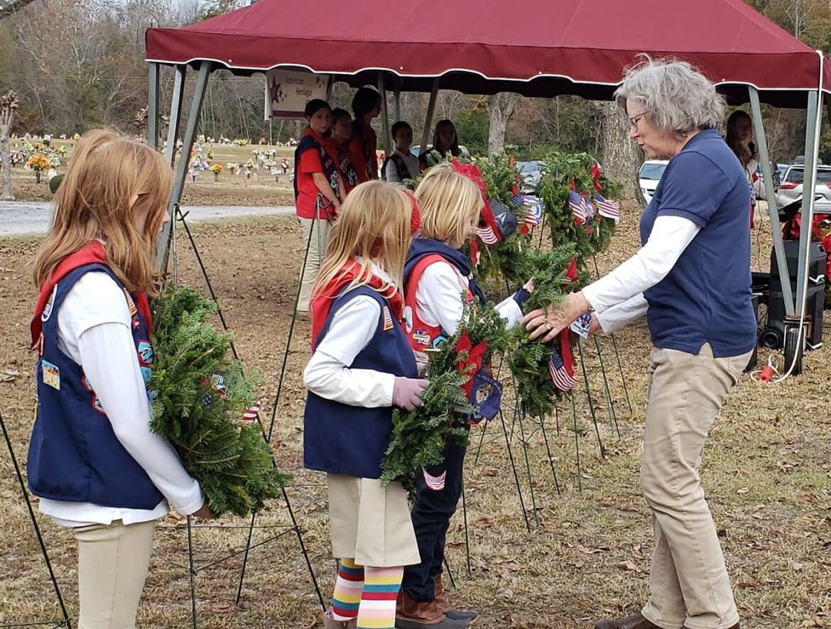 This morning, American Heritage Girls from Troop AL-0125 joined with veterans, officials and families to pay honor and remembrance to Veterans who served their country but have since passed away.