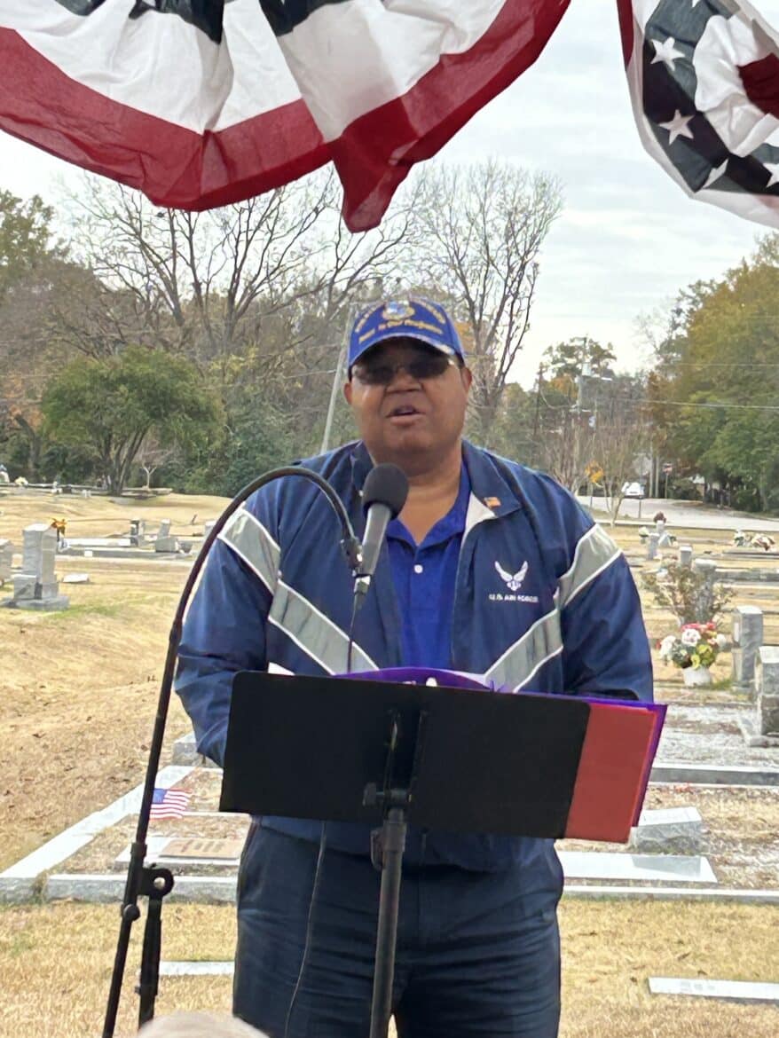 In keeping with the 2024 national theme established by Wreaths Across America, guest speaker, Retired U.S. Air Force Major John A. (Jab) Brown, encouraged attendees to “Live with Purpose.” He cited numerous examples of veterans in Wetumpka and surrounding areas who have lived with purpose. He challenged the audience to take it one step further – to “live with purpose, on purpose” as many of our veterans have done.