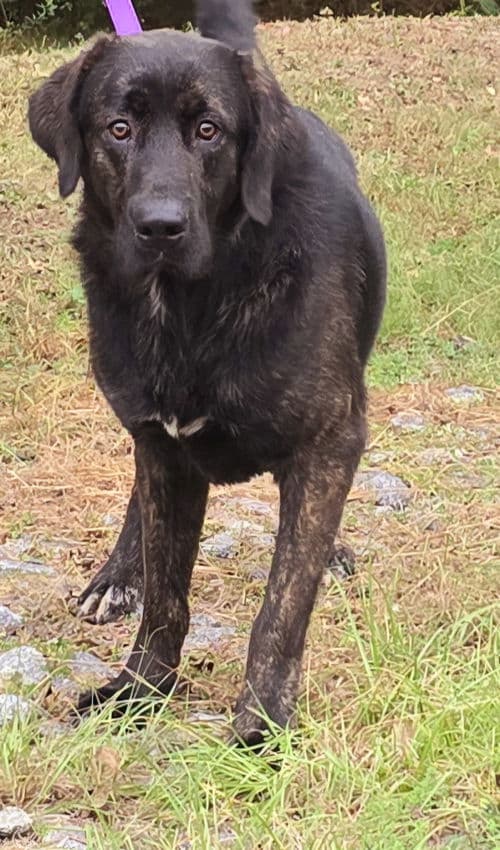 Matty is a male, 3-4-years old, 70 lbs – perhaps an Anatolian/Retriever mix. He came to us as a stray that was never reclaimed and is a complete sweetheart unless you are a cat! He is good with female dogs and older children but might be a bit too exuberant for small children. Matty is a very inquisitive boy but not overly motivated by treats. We think he would love a large yard to call his own when outside and a spot on the couch when in with his family.