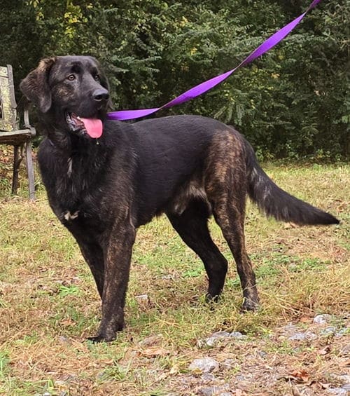 Matty is a male, 3-4-years old, 70 lbs – perhaps an Anatolian/Retriever mix. He came to us as a stray that was never reclaimed and is a complete sweetheart unless you are a cat! He is good with female dogs and older children but might be a bit too exuberant for small children. Matty is a very inquisitive boy but not overly motivated by treats. We think he would love a large yard to call his own when outside and a spot on the couch when in with his family.