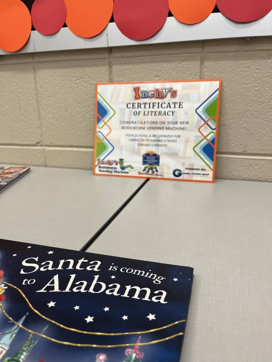 Pine Level Elementary School, a K4-5th grade school, unveiled its new book vending machine with a Prattville Area Chamber of Commerce ribbon cutting. This innovative addition is designed to inspire young readers and promote literacy as a part of the school’s Accelerated Reader (AR) program. The event took place on December 16, marking a significant milestone in the school’s efforts to make reading an engaging, accessible, and exciting experience for students of all ages.