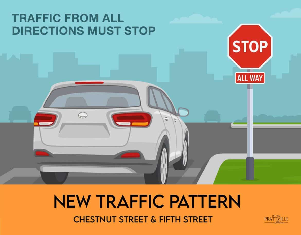 Traffic Alert: New 4-Way Stop Ahead! – Starting today, December 19th, the intersection at Chestnut Street and Fifth Street will transition from a 2-way stop to an all-way stop. All vehicles approaching the intersection from any direction must come to a complete stop.