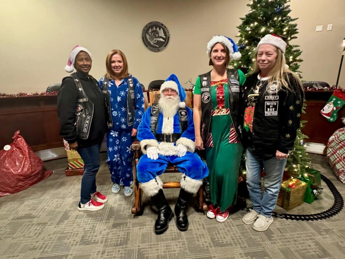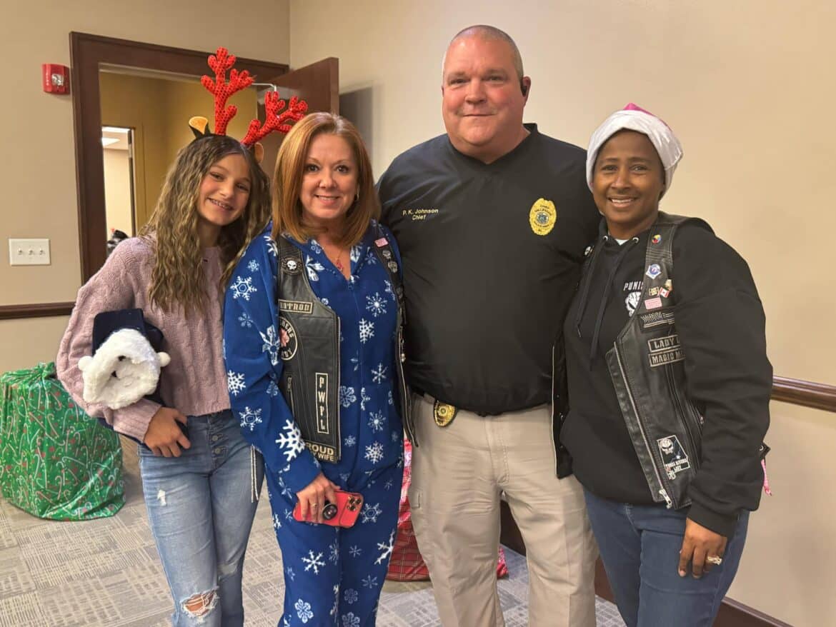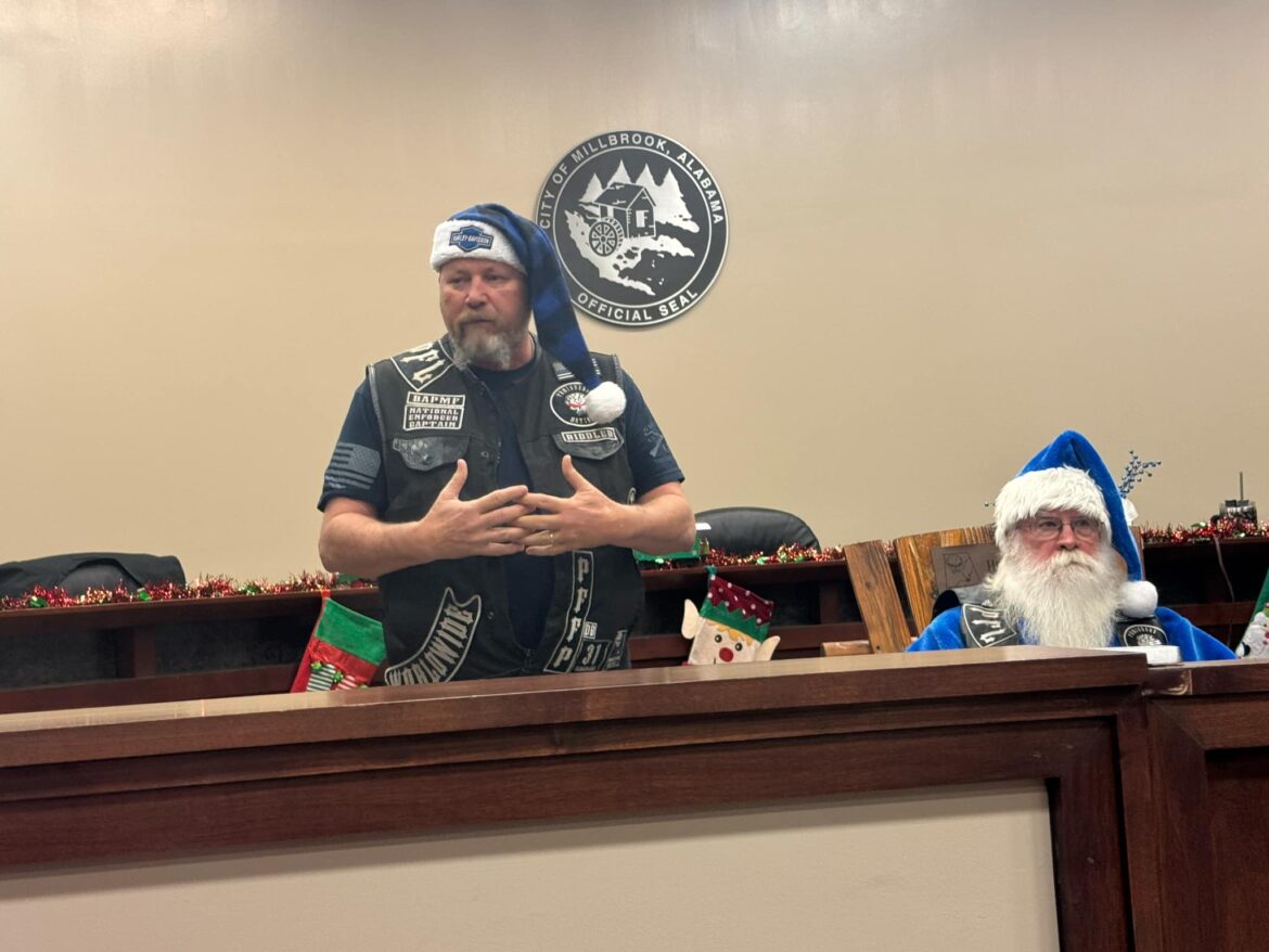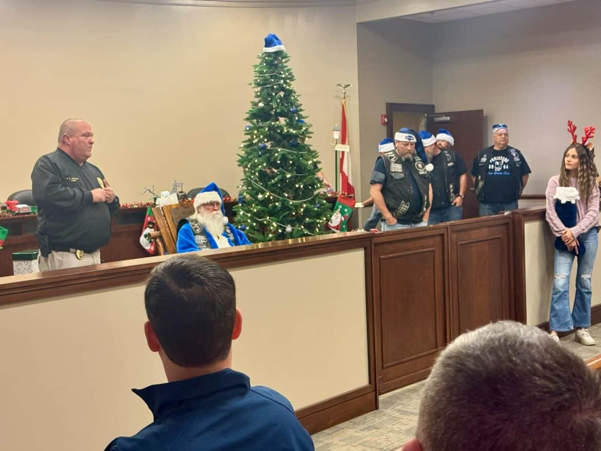 He continued, “As my boss, Mayor Al Kelley, often says, anytime you start thanking people somebody will inevitably get left out. That said, I would like to say Thank You to our partners, who’s hard work and generosity helped make Operation Blue Santa possible this year. Thank you to the Punishers Law Enforcement Motorcycle ClubThree Rivers Chapter, American Legion Post 133, Marty Bean and the Front Porch Grill, Millbrook Presbyterian Church, Robinson Springs Church, Welcome Food Pantry, Pest Pro, Montgomery Harley Davidson, Gina Pellegrino of Millbrook Domino’s Pizza, Vance Law Firm and the wonderful citizens in our community that partnered with us to make this worthwhile campaign a success. Last but certainly not least, I want to say Thank You to Captain Jason Brosius and Mrs. Melissa Stiles, who spearheaded the department’s effort this year and our staff, who worked diligently over the past few weeks in support. Things like this take a lot of planning, time, money and effort. I am extremely proud and appreciative to be associated with so many people that have a servant’s heart. That is one of many things that makes Millbrook very special.