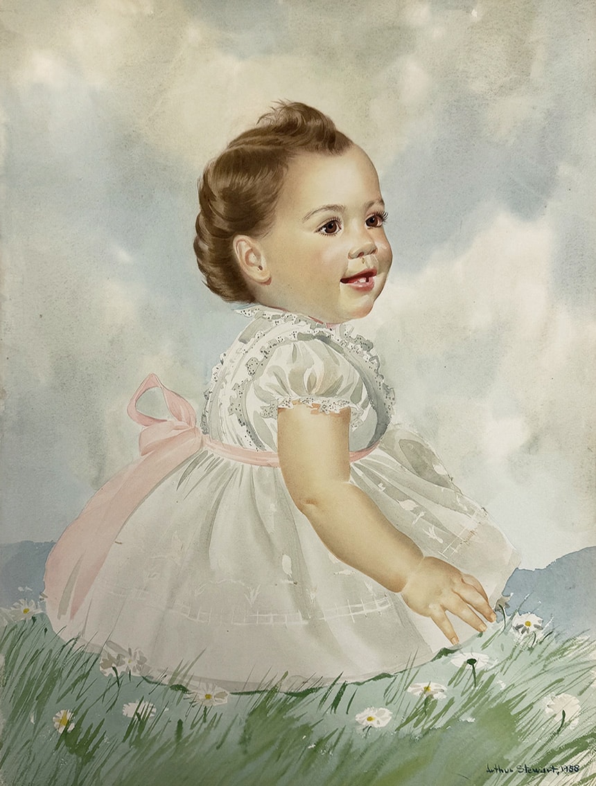 Ann contacted us expressing her desire to donate two paintings by Arthur Walter Stewart, II, which belonged to her mother, the former Alabama Senator. During our recent visit to Alabama’s Gulf Coast, we took possession of the two watercolor portraits. One is a portrait of former Senator Strong’s mother, Frances Coleman Webb, and the other is a portrait of one of the Senator’s five daughters, Camilla Stewart Strong.