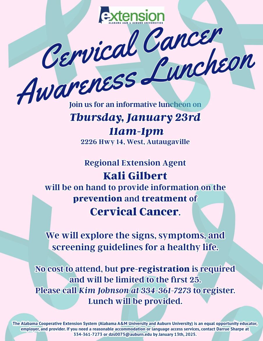Autauga County Alabama Extension office is hosting a Cervical Cancer Awareness Luncheon.