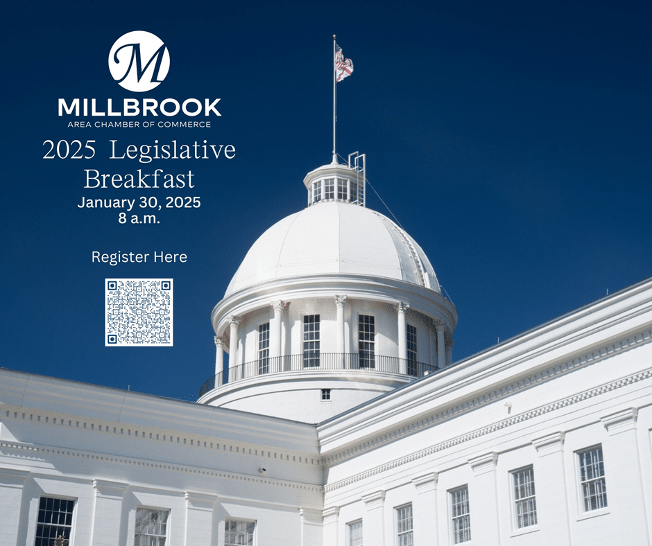 The Millbrook Area Chamber of Commerce is hosting a Legislative Breakfast Jan. 30 at 6 a.m. at the Millbrook Civic Center. Tickets are $40 per person. To register, visit https://business.millbrookchamber.org/ap/Events/Register/2JFNQKXs3CNCz