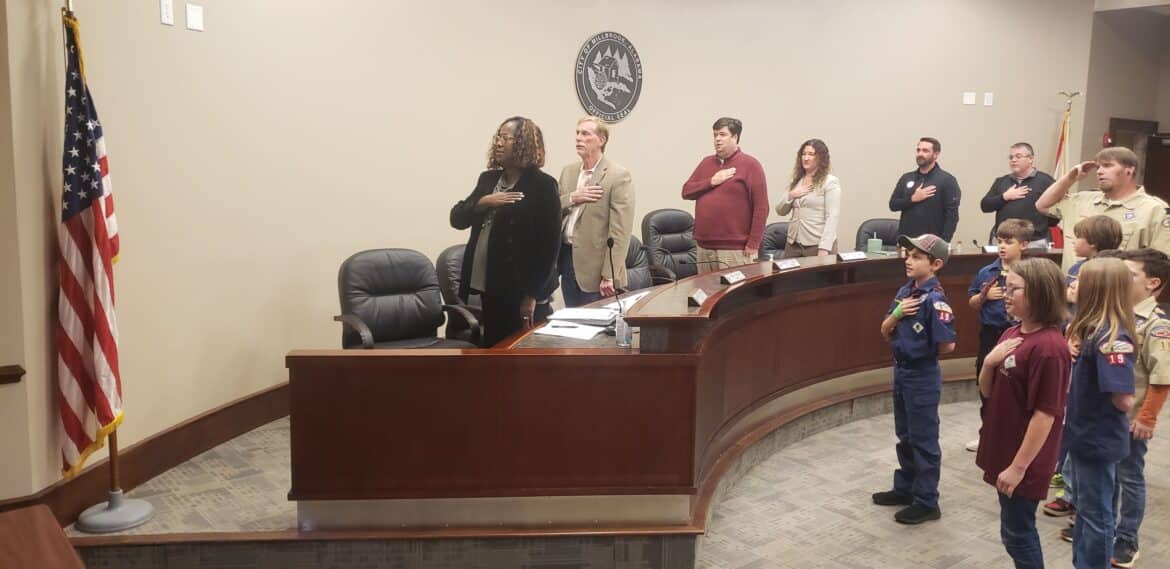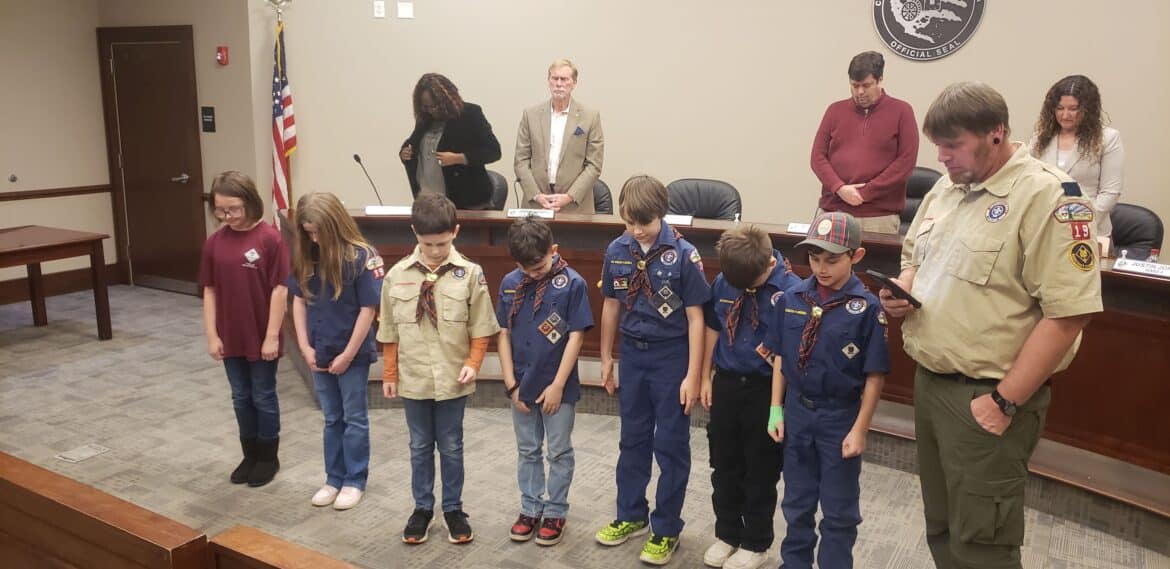 Millbrook Scouts from Troop 19 recently visited the Millbrook City Council meeting, leading the Pledge of Allegiance, and even having a question-and-answer period with Mayor Al Kelley.