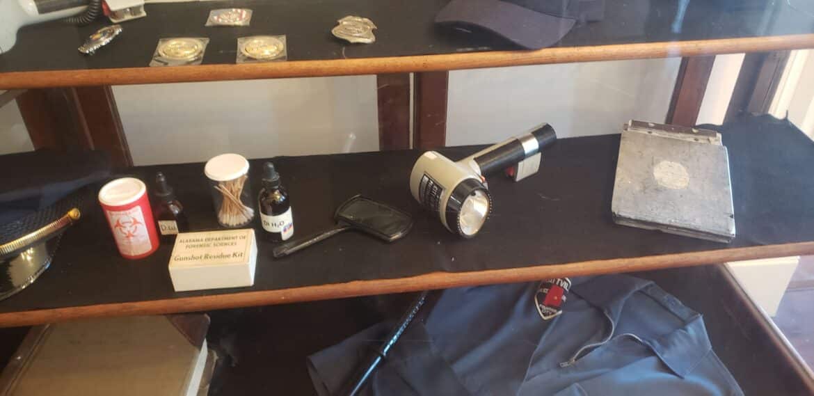 Jordan reached out to the Prattville Police, Autauga County Sheriff’s Office and ALEA, asking if they had any items that could be displayed throughout the entryway and two rooms of the museum.
