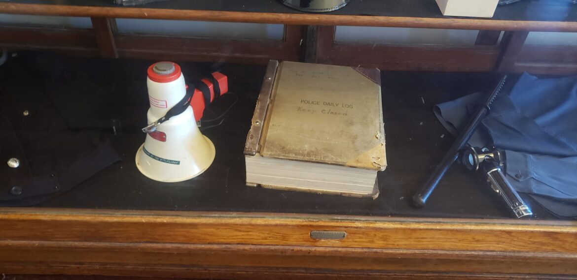 Asked and answered! The items are now on display which show multiple pieces of equipment, photos and history of law enforcement in our area.