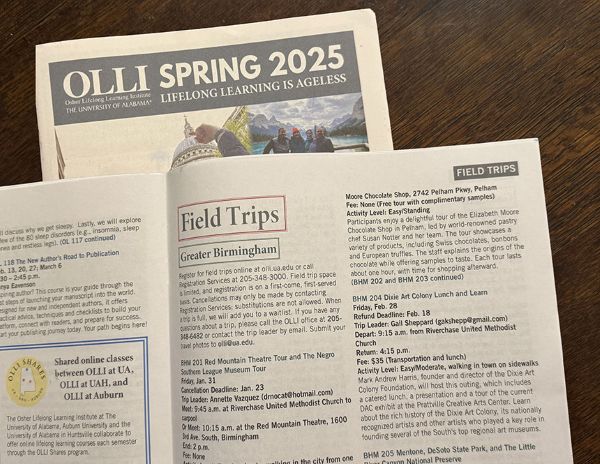 Osher Lifelong Learning Institute (OLLI) at The University of Alabama offers adults 50-plus enriching educational, social, and cultural experiences through courses, field trips, events, and travel. The 125 Osher Lifelong Learning Institutes are located at universities in all 50 states and the District of Columbia. The nonprofit is funded in part by The Bernard Osher Institute.