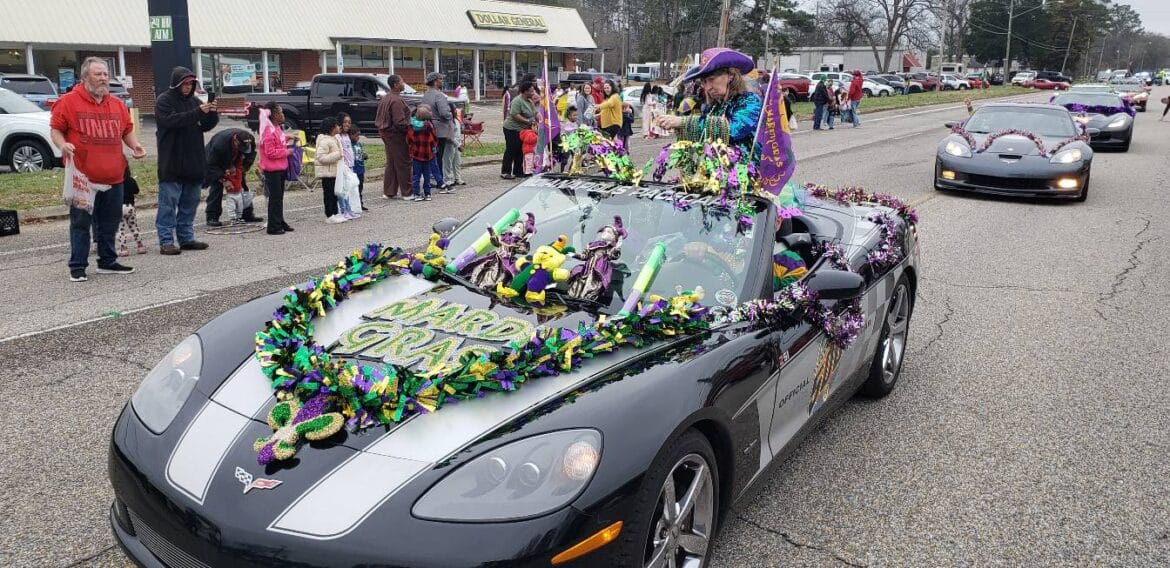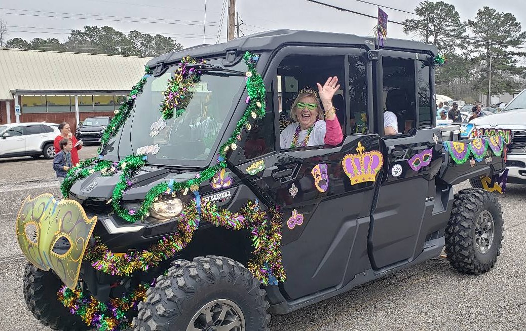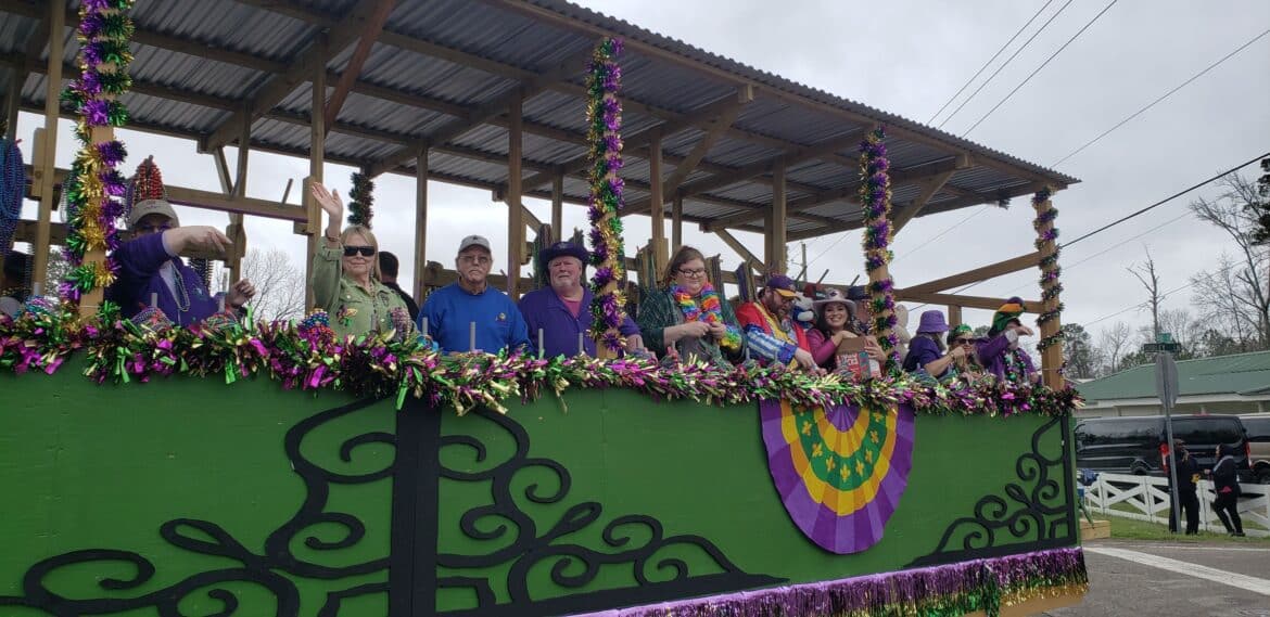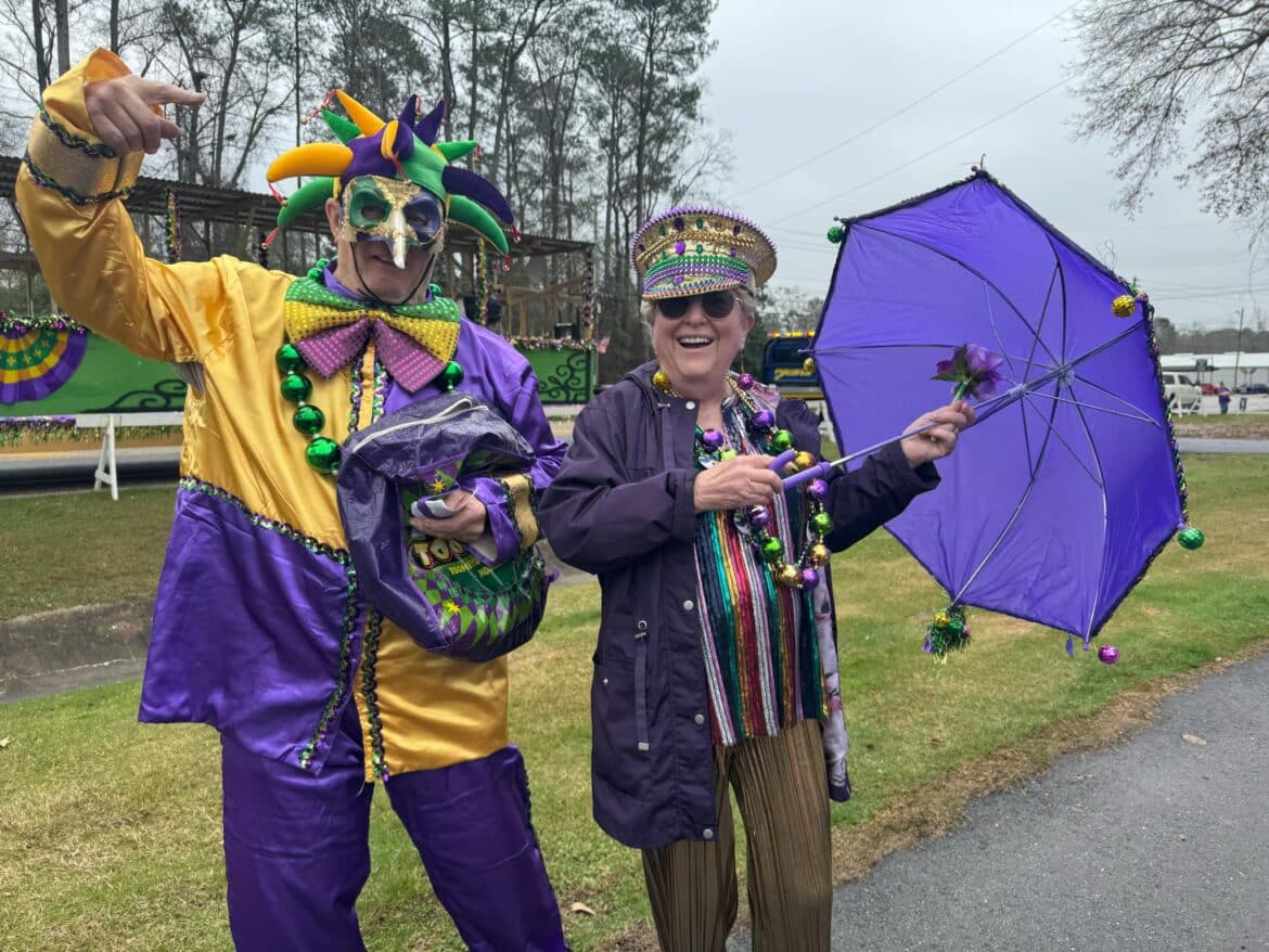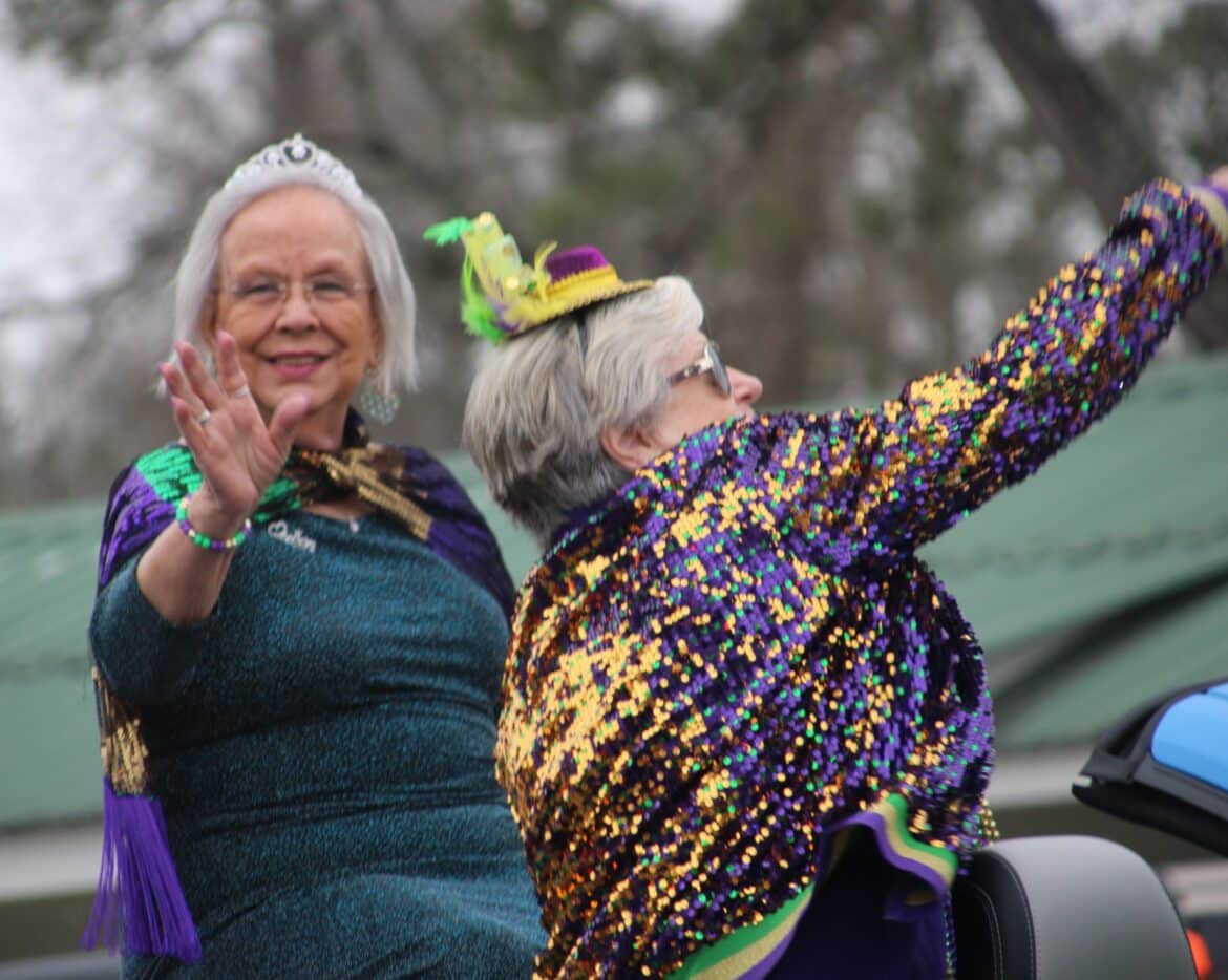 At noon, the parade rolled with 100 floats from Mill Creek Park, north on to Main Street until it passed the judges stand in front of Village Green Park. Grand Marshal for the parade Rosa Lee Wade, who was one of the first people to help organize the Millbrook Revelers. She and her husband were the first Mardi Gras King and Queen 20 years ago. Sadly, Jim passed away several years ago, but Rosa Lee said he loved Mardi Gras, and she was honored to be this year’s grand marshal.