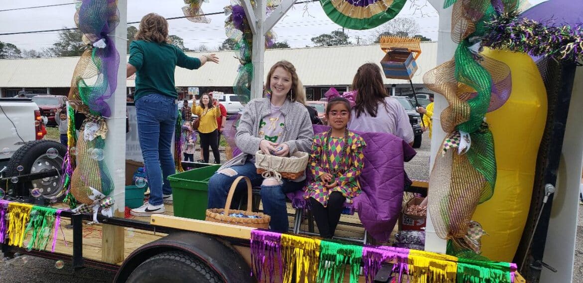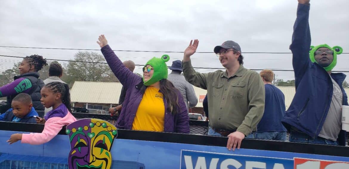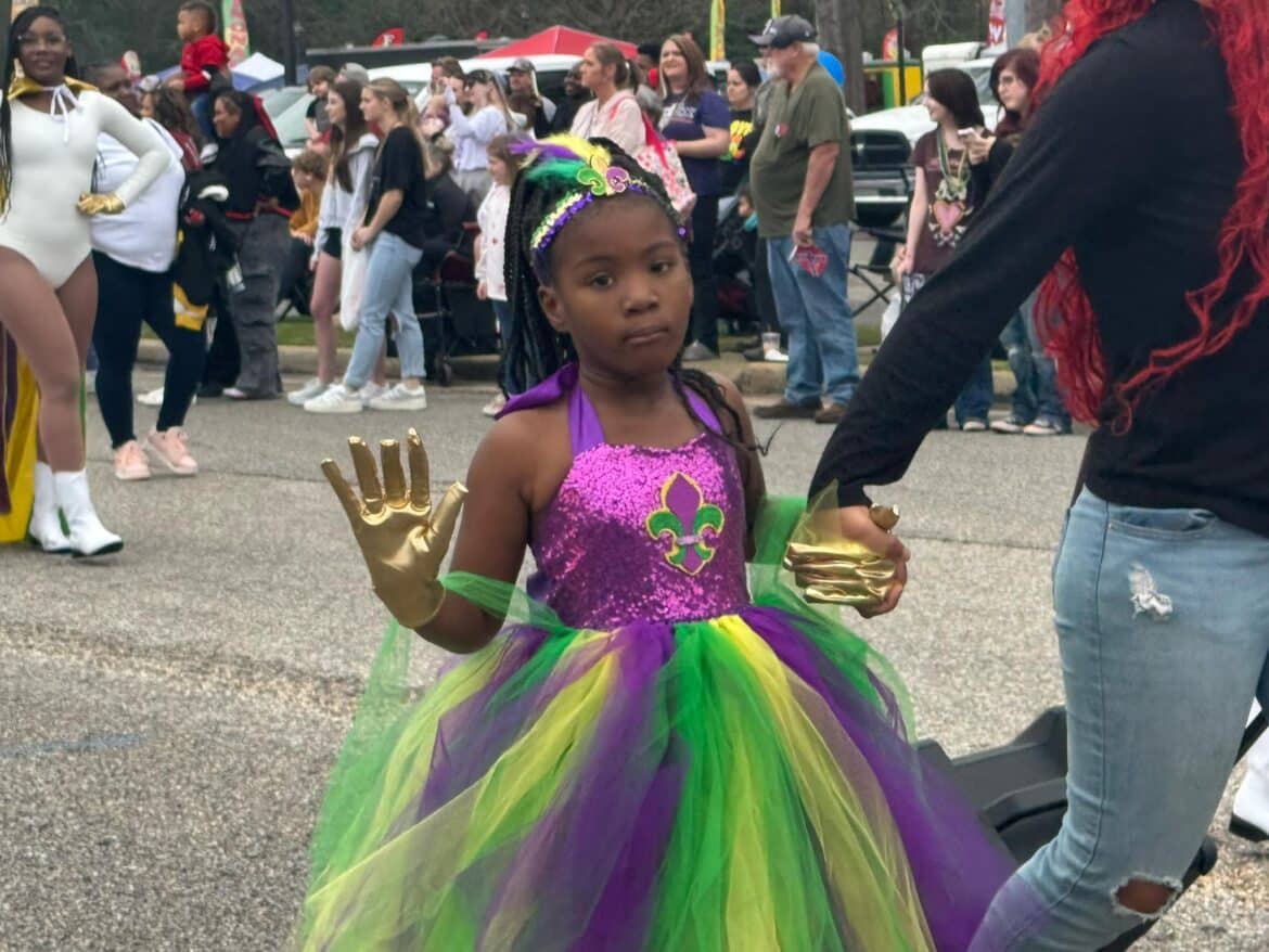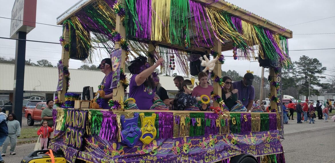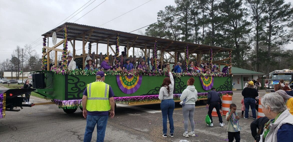At noon, the parade rolled with 100 floats from Mill Creek Park, north on to Main Street until it passed the judges stand in front of Village Green Park. Grand Marshal for the parade Rosa Lee Wade, who was one of the first people to help organize the Millbrook Revelers. She and her husband were the first Mardi Gras King and Queen 20 years ago. Sadly, Jim passed away several years ago, but Rosa Lee said he loved Mardi Gras, and she was honored to be this year’s grand marshal.
