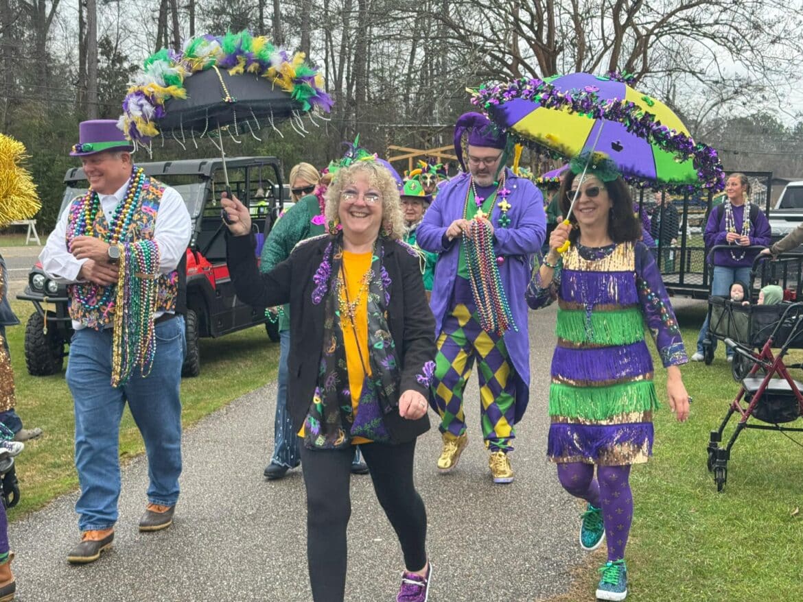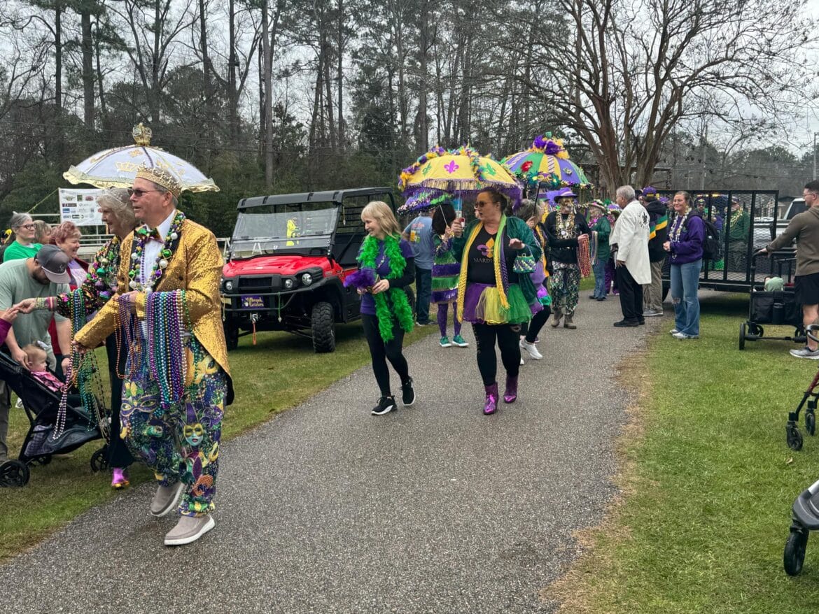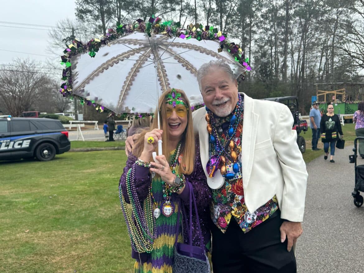 At 10 a.m. the annual Umbrella Stroll featuring Mardi Gras Queen Sheila Wood and King Walter Dodd began, with Revelers donned in their best Mardi Gras regalia parading along. Jazzy music flowed through the park as everyone danced their way around with onlookers.