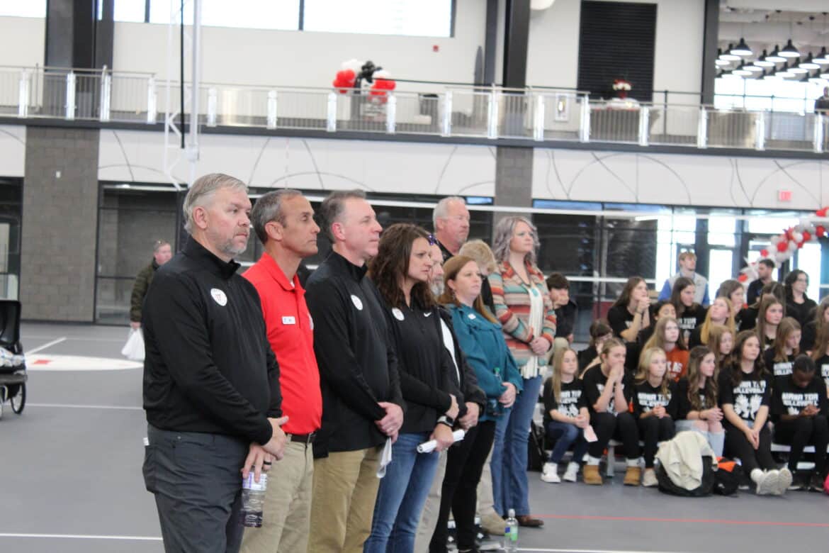 Prior to the game area officials were led on to the field for the National Anthem and recognized.
