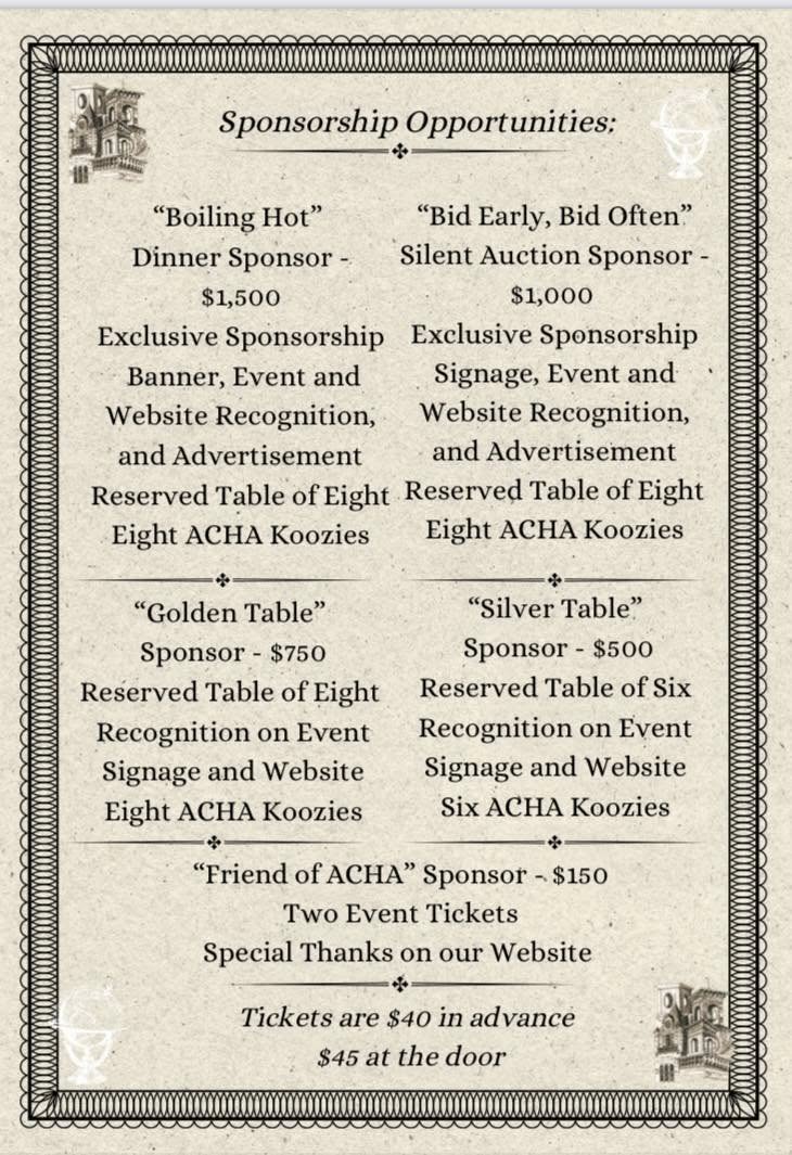 For information and sponsorship opportunities, call the Prattaugan Museum. See graphic below for sponsorship levels.