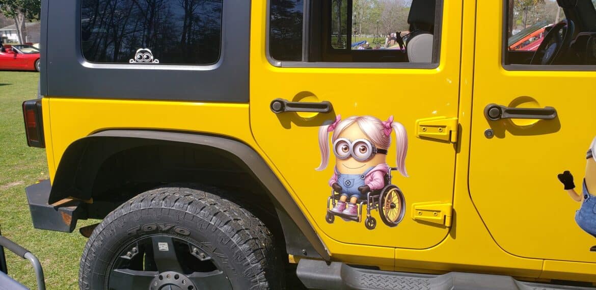 We also met Michael and Gail Davis, of Montgomery, with their minion-themed, brilliant yellow Jeep. Gail began to tell the story of the theme. The jeep is dedicated to their daughter, Zoe, who loved minions, but passed away earlier this year at the age of just 15.
