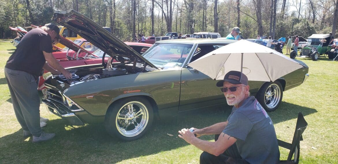 We met Billy Brock, of Boones Chapel. He and his immaculately restored 1969 green Chevrolet Chevelle SS 396 caught our eye. Billy’s father was Dennis Brock, who originally bought the car brand new. When Billy was 15, his father turned it over to him, but the two worked together over the years to restore it. When Dennis Brock passed, Billy brought in his son Kyle to help with restorations. Kyle is a firefighter for the Prattville Fire Department. One day, he will take possession, Billy said. “But not just yet,” he added with a grin.