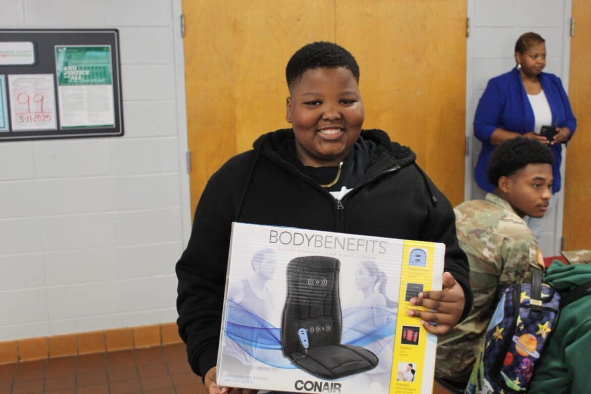 He spoke about his 5th grade coach, who was instrumental in getting him involved in football. He also asked the boys in the audience about what they wanted to be when they grew up. Some of the students wanted to be NFL players, NBA players, MLB players, lawyers and other professions. He said to the students, “Young men, if you don’t have a dream, get one. Fathers and father figures, plant a seed.”