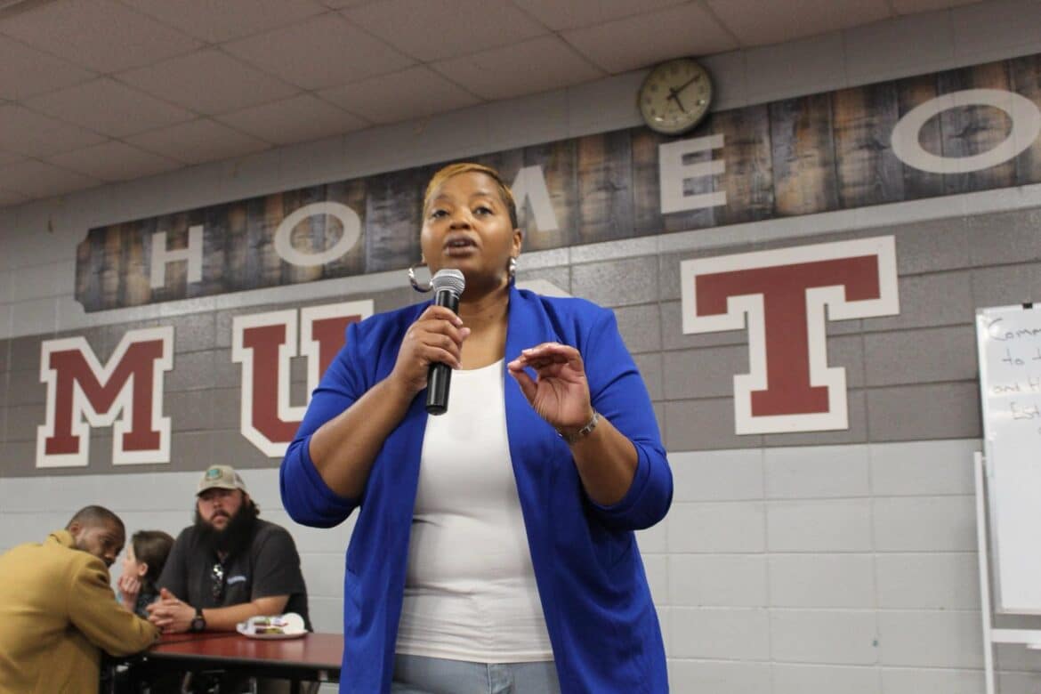 Last week, Millbrook Middle School hosted their annual Fritters and Father Figures event in the school cafeteria. Over 150 students attended with their fathers and father figures. This year, Coach Charlie Goodyear, an Assistant Athletic Director for Athletic Performance at Huntingdon College, was the guest speaker. Letitia Ruffin-Johnson, Assistant Principal for 5th and 6th grade, was in charge of putting this event together for the school. All guests enjoyed fritters, and donuts provided by Kingdom Dough of Millbrook. Coffee was provided by Sweet Hart Coffee Co., in Millbrook. Door prizes were given out at the end. Some of these amazing prizes were graciously donated by the Floyd family of Main Street Vintage Market, a swag bucket donated by Kyle Jenkins owner The Worx Auto Detail, a hat from the Millbrook Area Chamber of Commerce, and other wonderful prizes.