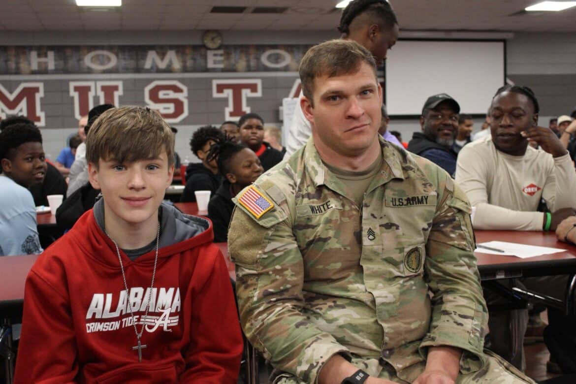 Goodyear brought four of his players from Huntingdon College to the event, including Timothy McReynolds, Nicholas Brashear, Blake Palmer, and Gus Johnson. They each spoke before Coach Goodyear and were relatable to the boys in grades fifth through eighth grade. Each of the young men spoke about the men who were instrumental in their own lives.