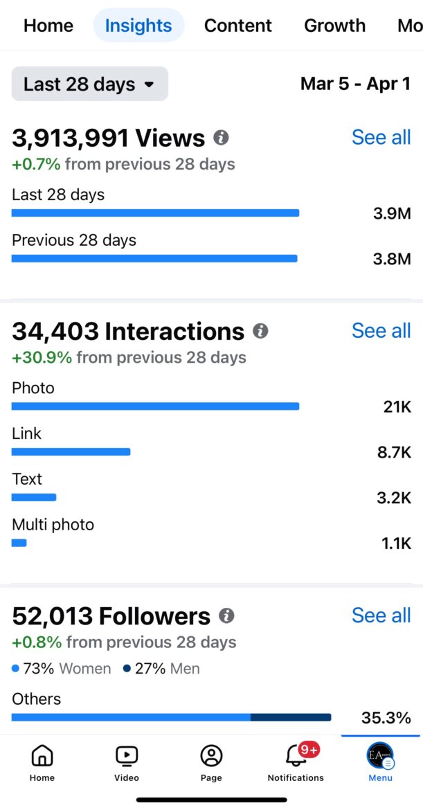 We make a pretty good team. She is the pretty one. We have walked through this growth together, she in her high heels, and me in my boots. Today we are over 52,000 likes on Facebook alone, and our website numbers are through the roof. I have included a graphic which gives the latest numbers from this morning. In the past 28 days alone, we have had 3.9 million views.