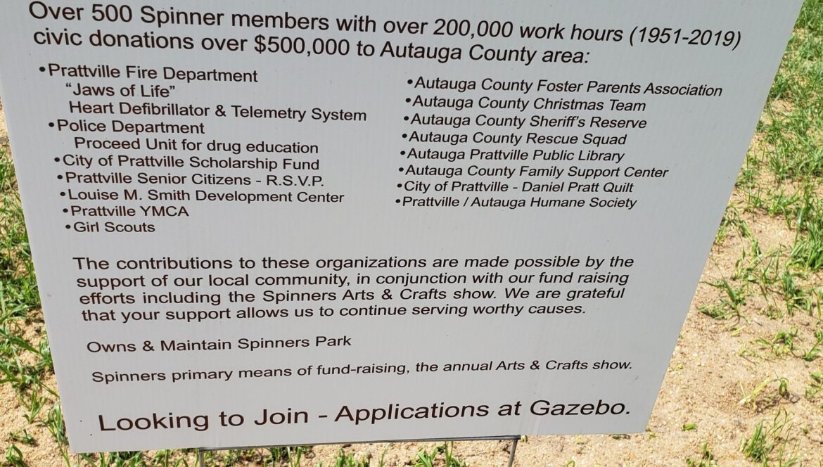 Autauga Interfaith Care Center – AICC is a food pantry that serves Autauga County, and is fully funded by the community. Official Denise Brown thanked the Spinners for their donation, saying it is much appreciated. Follow them on Facebook at https://www.facebook.com/aiccautaugainterfaithcarecenter