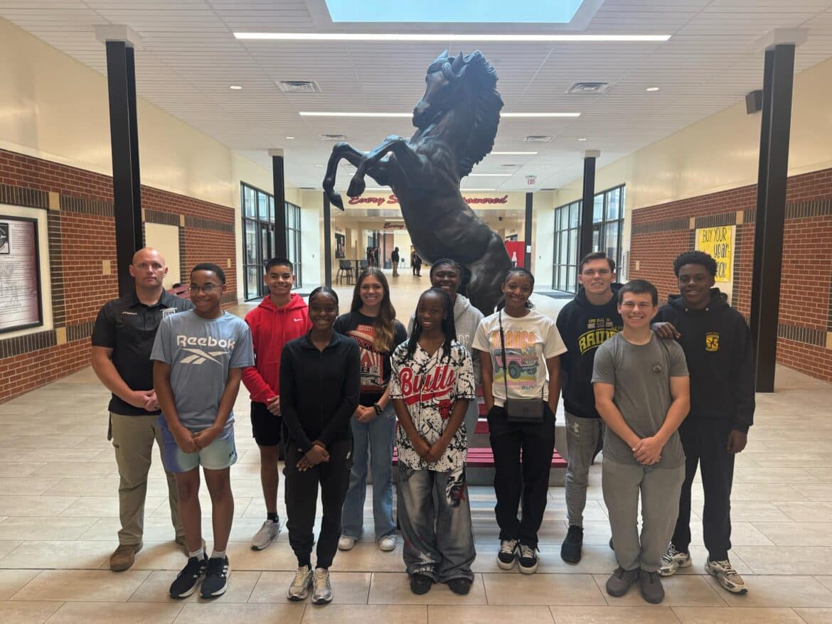 Top Photo: From left, Commissioner Henry Hines, Gabriella Brown (SEHS JROTC), Principal Ewell Fuller (Principal), Commission Chairman Bart Mercer, JROTC instructor SFC Wayne Kindley, Elmore County School Board member Bill Myers, Commissioner Desirae Lewis Jackson, School Supt. Richard Dennis, Taye Crawford (SEHS JROTC), Tucker Ayers (SEHS JROTC), and JROTC instructor Sgt. Major Nathaniel Bartee.