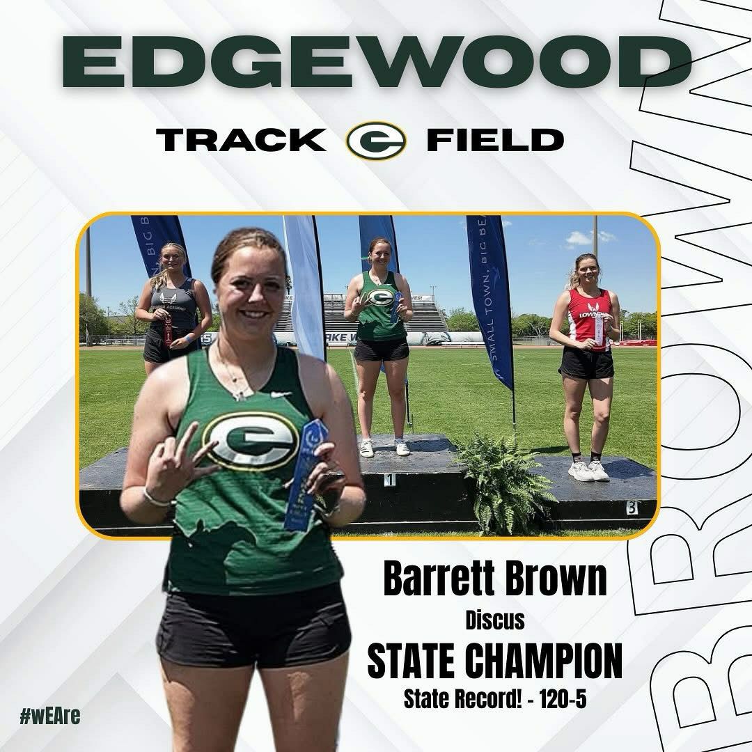 Junior Barrett Brown finished the season with her third consecutive State Championship in Discus. Barrett set the state record with a throw of 120-5.