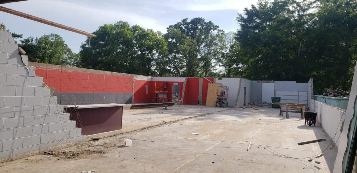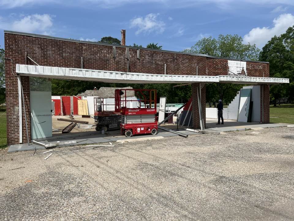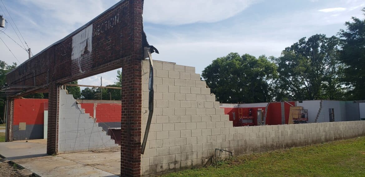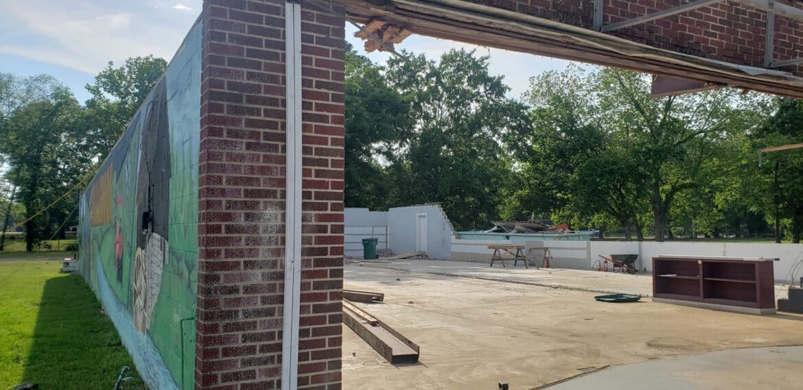 Crews started working on the building recently, taking out two walls, and are working on the building. The first mural in Millbrook is located on the south wall and will be incorporated into the restaurant. It was hoped that more of the building could be saved, but unfortunately age and damage did not make that possible. Big Mike’s owners were adamant about saving as much of the original building as possible.