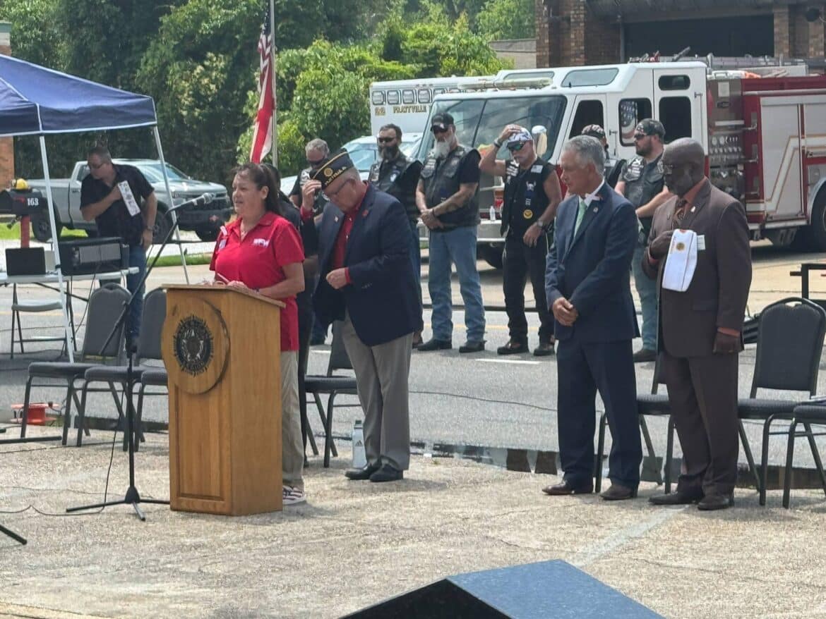 The guest speaker for the ceremony was American Legion Department of Alabama, Commander Willie Rogers. Other special guests included Prattville Mayor Bill Gillespie, Jr, Commander of Veterans of Foreign Wars Post 1349 Janice Harris, President of Veterans of Foreign Wars Post 1349 Auxiliary Lynette Bales, Compatriot Allen Herrod and Compatriot Skip Dotherow of the General John Archer Elmore Chapter Sons of the American Revolution, and American Legion Riders.