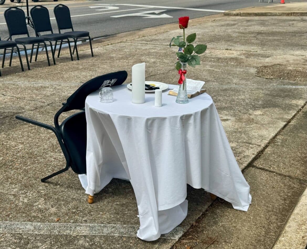 The ceremony then recognized a table and empty chair, symbolizing the members of the armed forces that are missing from all ranks. They are referred to as POWs and MIAs.