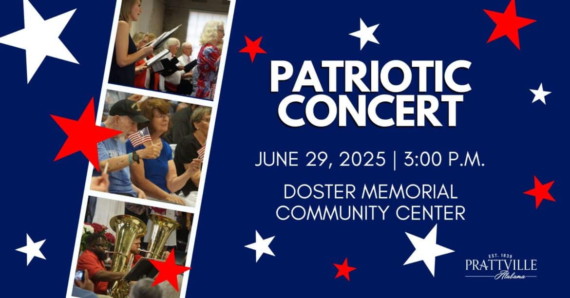 Sunday, at 3 p.m., bring the family to the Doster Community Center in Prattville for a FREE Patriotic Concert! There is no admission, but a donation of a non-perishable food item would be greatly appreciated. All donations will benefit the Autauga Interfaith Care Center (AICC.)