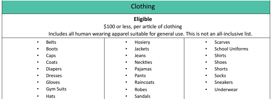 See below for what is and is not eligible.