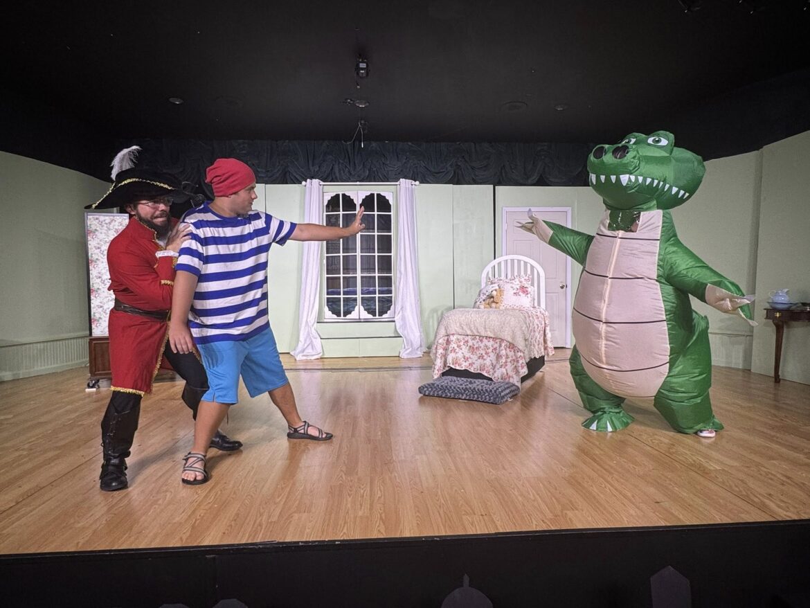 As for this production, from the Millbrook Theatre website: “This panto-style re-imagining of J.M. Barrie’s classic book focuses on Wendy’s transition from a child to a responsible young lady — with plenty of adventure in between! When Wendy refuses to leave the nursery and sleep downstairs, her mother gives her a mysterious box containing Peter Pan’s shadow. Unable to resist, Wendy opens it, Peter arrives, and they’re off to Neverland! But even there, Wendy must learn what it means to grow up. Full of enchanting music and beloved characters, this fast-paced adaptation of Barrie’s Peter and Wendy is a treat for children of any age.” ~ Playscripts