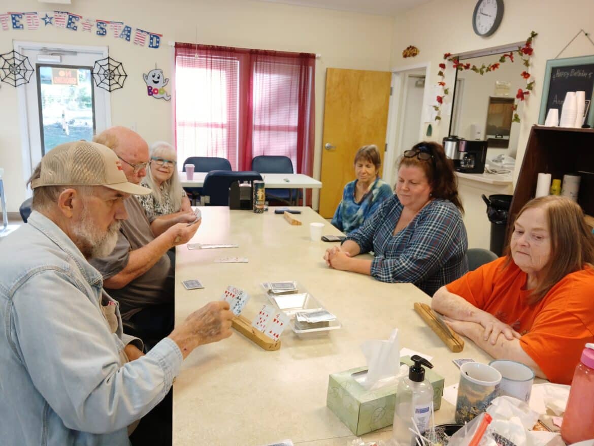 See photos below including karaoke, exercise class, and card games. Karaoke features Robin Nummy and Greg McCain. Exercise shows Mr. Willie Toney at the head of the exercise class. Other pictures are of various people playing cards and visiting at the Eclectic Senior Center.