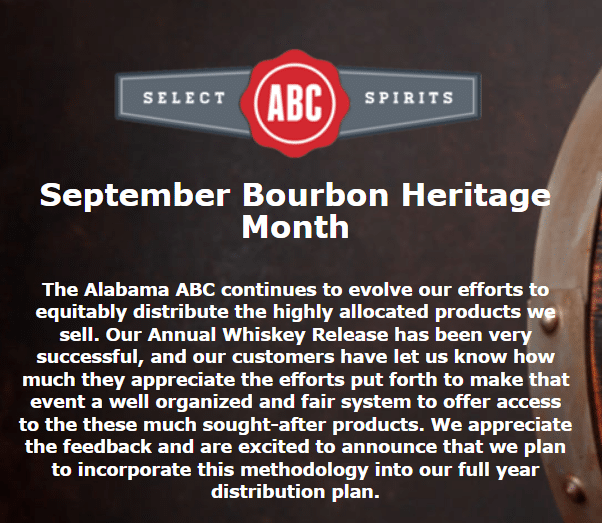 The Alabama ABC Board announced a lineup of special sweepstakes events for September in celebration of National Bourbon Heritage Month.