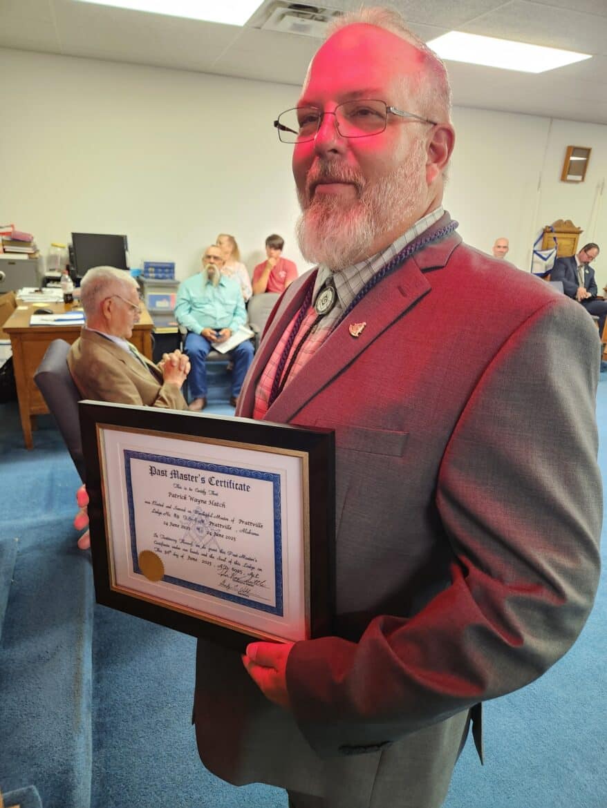 On June 30, 2025 the elected Officers of Prattville Lodge #89 were duly installed by Brother Travis Defoor. A large crowd gathered for the celebration of new officers, with a meal before the ceremony official ceremony.