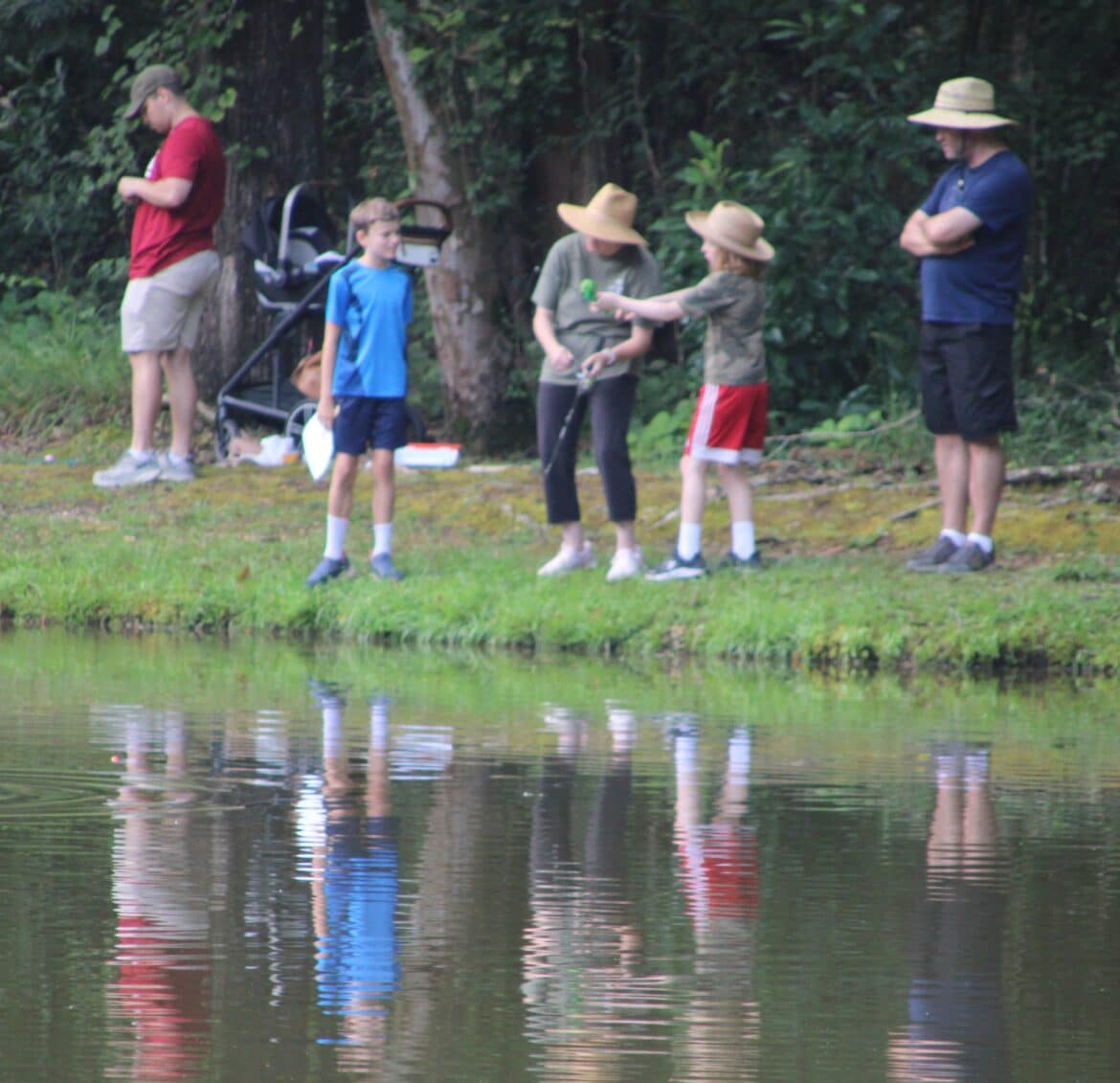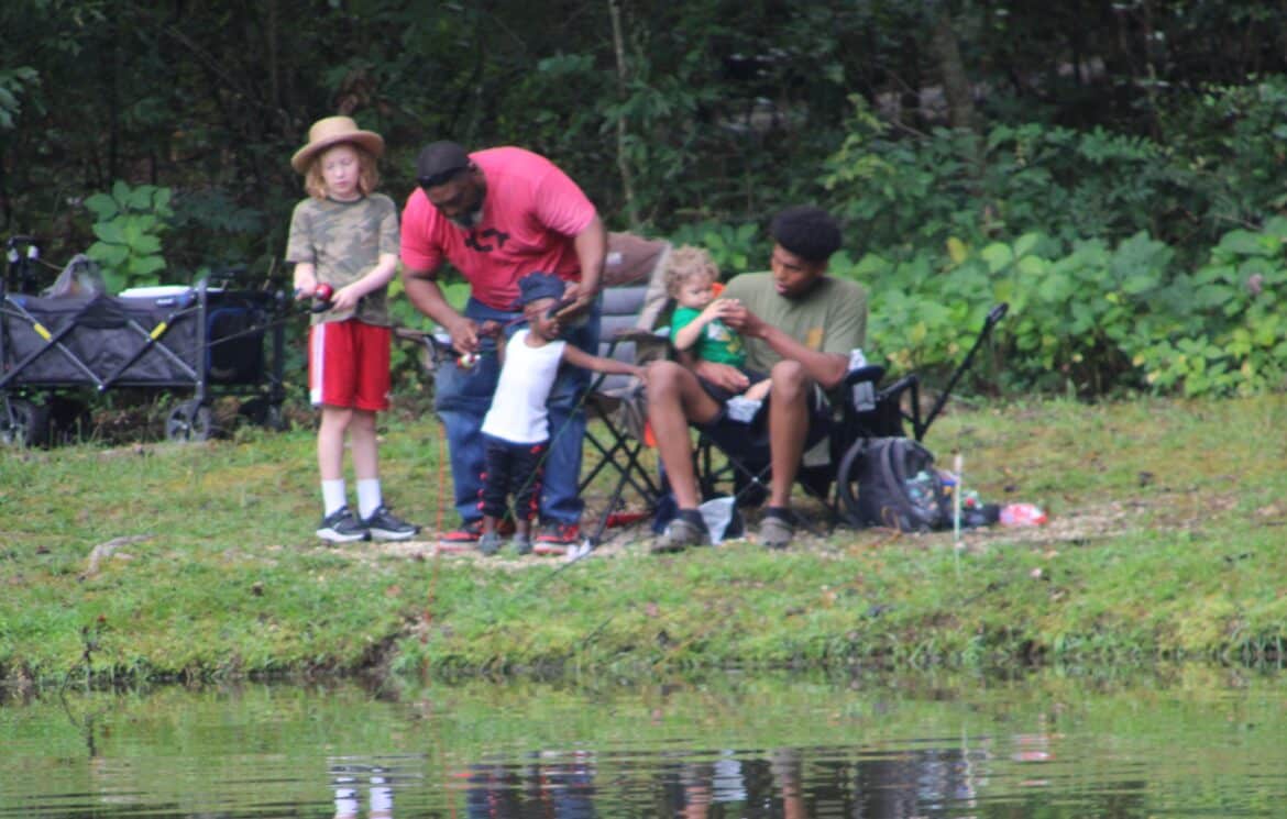This morning the fishing was great, and the youth fishing, watched closely by family members, seemed to enjoy it all.