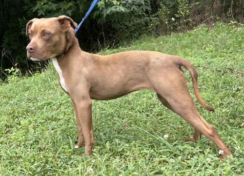 Chatty Cathy is a nine-month-old female, only about 40 pounds, so not a big gal. She came to us as an emaciated stray and her “LOVE ME” personality won us over. She craves attention and will hug you to keep you close. Very playful, great with male and female dogs and cats and yes, can be talkative to get your attention. She can be a couch potato or have the zoomies – all happy dogs deserve to get to do zoomies as much as they want.