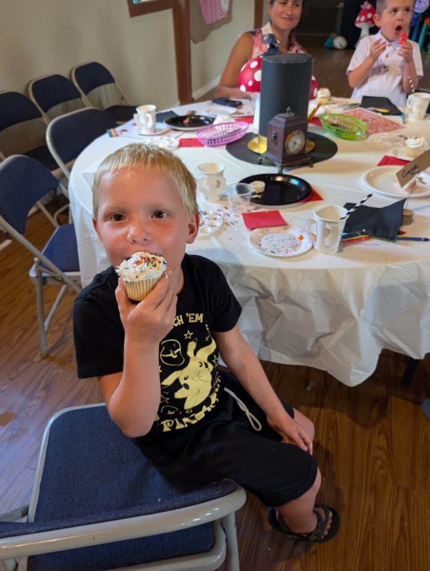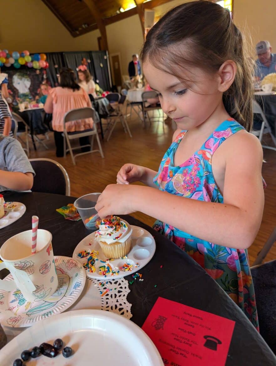 Tea Time consisted of snacks and cupcake decorating. Story Time was the story of “The Rabbit Hole,” and also emphasized Matthew 18:12-14.