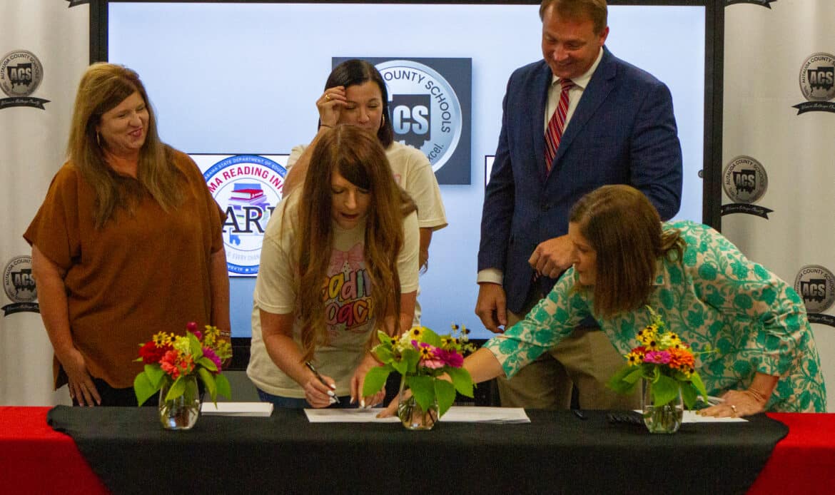 The Autauga County Board of Education recognized its instructional coaches, Aug. 18, 2025, in a signing ceremony at the Chapter One Center.