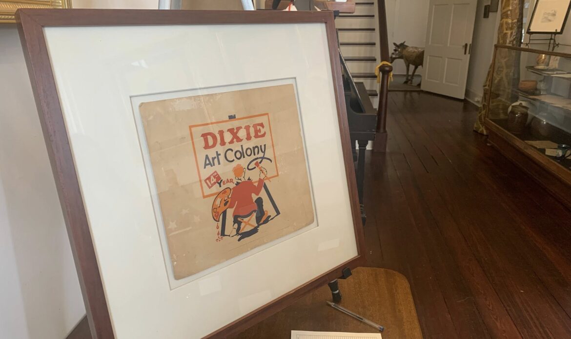 The DIXIE ART COLONY (DAC) Foundation partnered with ACHA on this exhibit. DAC artists, located in central Alabama, traveled the area painting local sites. Several original examples by DAC artists are found in the exhibit. A watercolor and pencil sketch of Bogg’s Pottery by noted Southern artist, Kelly Fitzpatrick, are featured in the display. The interest in the potteries followed the discovery of exceptional clay in Autauga County in the early 1900s attracting potters who came to the Prattville area to create utilitarian pottery for everyday use. Today new homes cover the site of an early pottery, Chalk Hill Pottery, located on Old Ridge Road. Other potteries, Tatum’s, Watson’s preceded the well-known Bogg’s Pottery. Later in the 1940s, a Mr. Spencer came to Prattville and opened a pottery on Highway 31. He was a chemist who was employed by the Prattville Cotton Mill and later served as mayor of the newly incorporated town, Prattmont! A decorated jug made by Spencer is on display. Current artists, Julianne Hansen and Jane Boutwell also contributed pottery works they created.