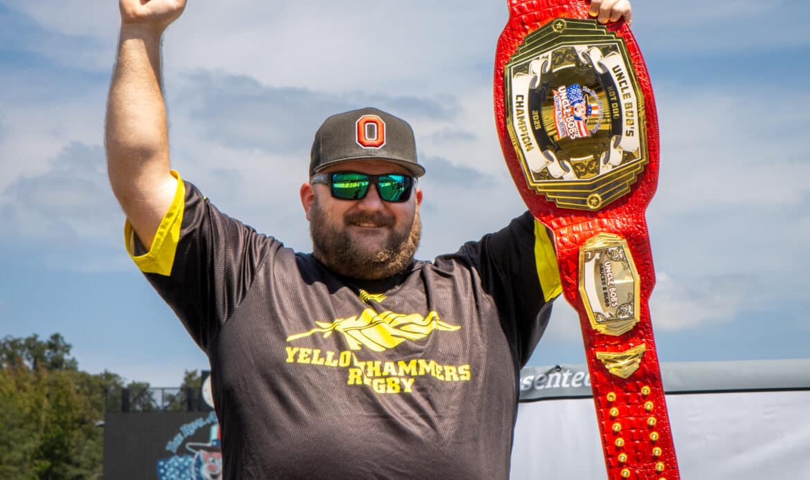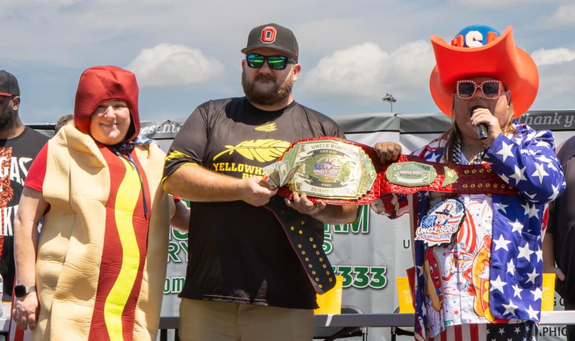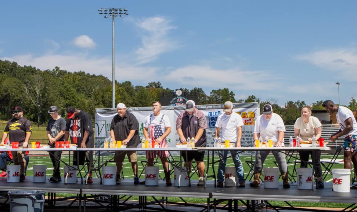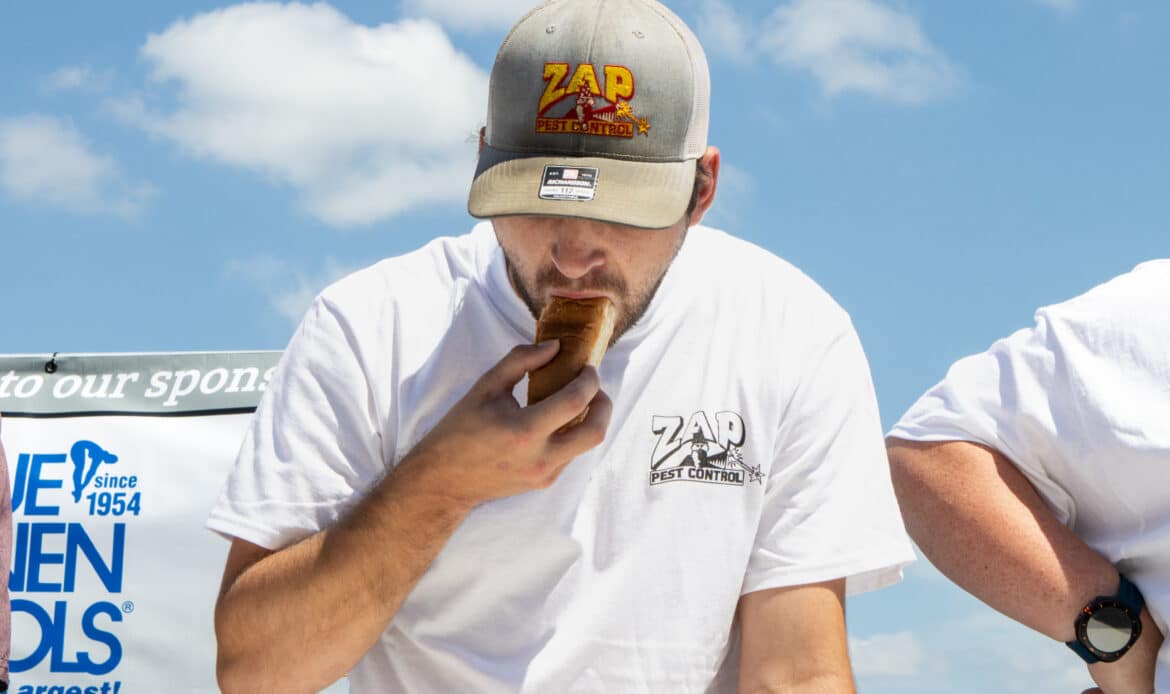J.D. Miller, a Prattville resident originally from Canton, Ohio, wins Uncle Bob’s Sauces and Rubs’ first annual hot dog eating contest on Labor Day, Sept. 1, 2025, at 17 Springs.