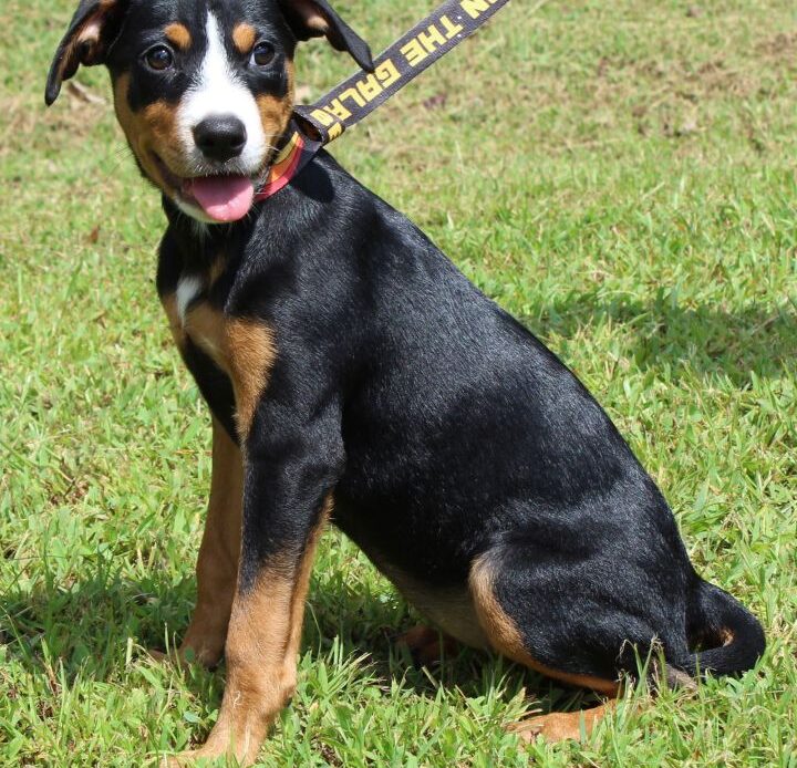 Honey Boo is a 3-month-old female Shepherd/Lab mix. She is an owner turn in because her owner did not have enough time for her. Honey Boo has a mostly black coat with gorgeous white and brown markings. She is absolutely a beautiful puppy who is full of fun! Honey Boo will be a large adult dog who will weigh over 50 pounds. She will be fine with children and other dogs. Her adopter will need to be patient with her and understand she is a puppy! Honey Boo will need plenty of time to play and exercise.