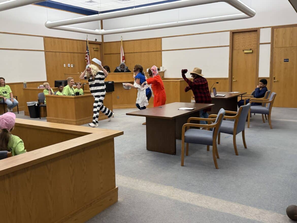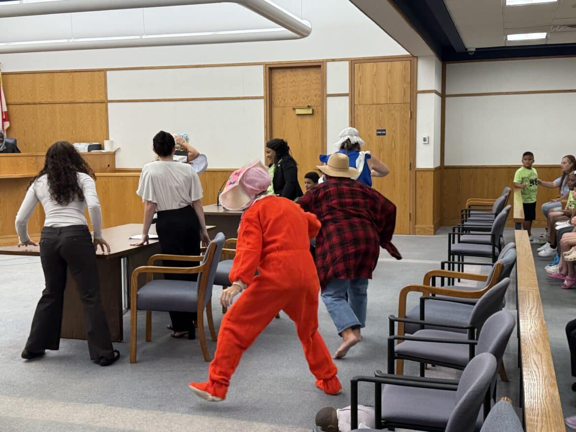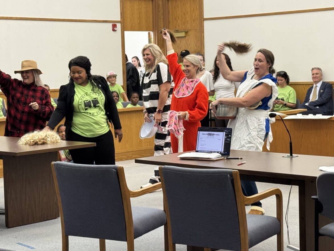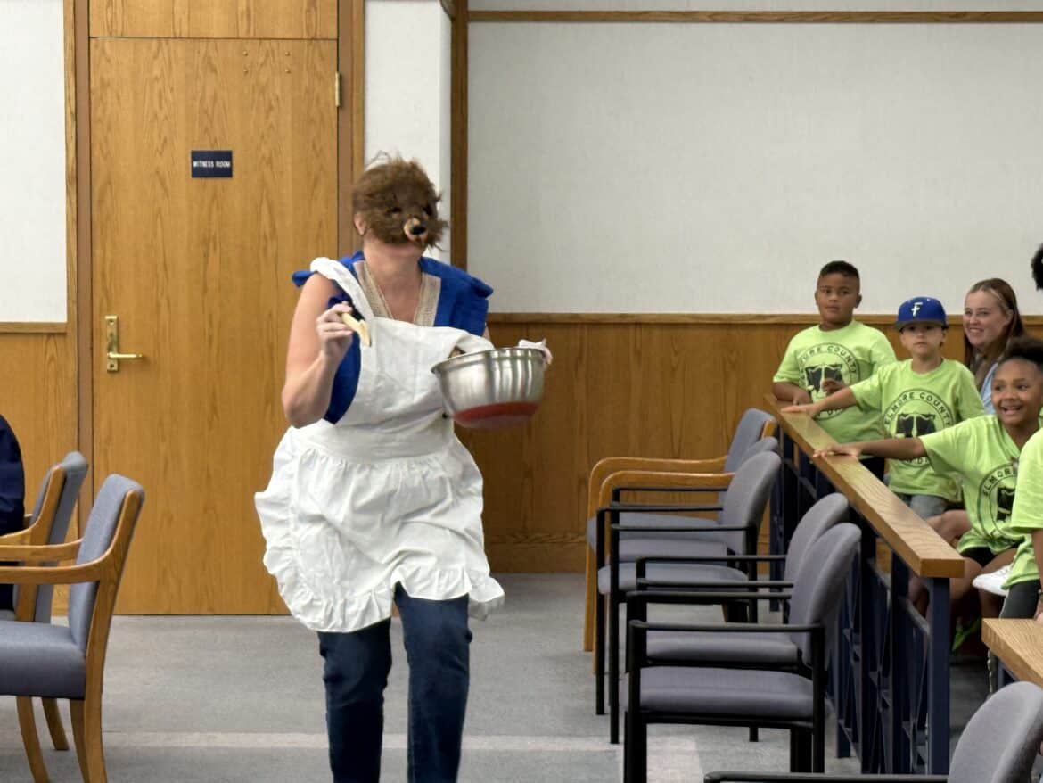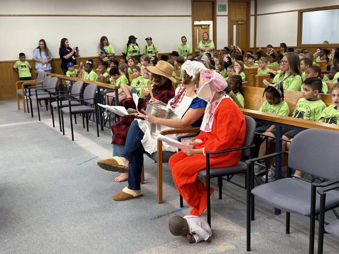 Judges, county commissioners, and area teachers wore costumes to play the part and bring excitement to the courtroom. This year, they did not disappoint. The children were engaged and were able to vote whether or not Goldilocks was guilty or not guilty for eating the porridge that she stole from the bears. Unanimously, she was found guilty.