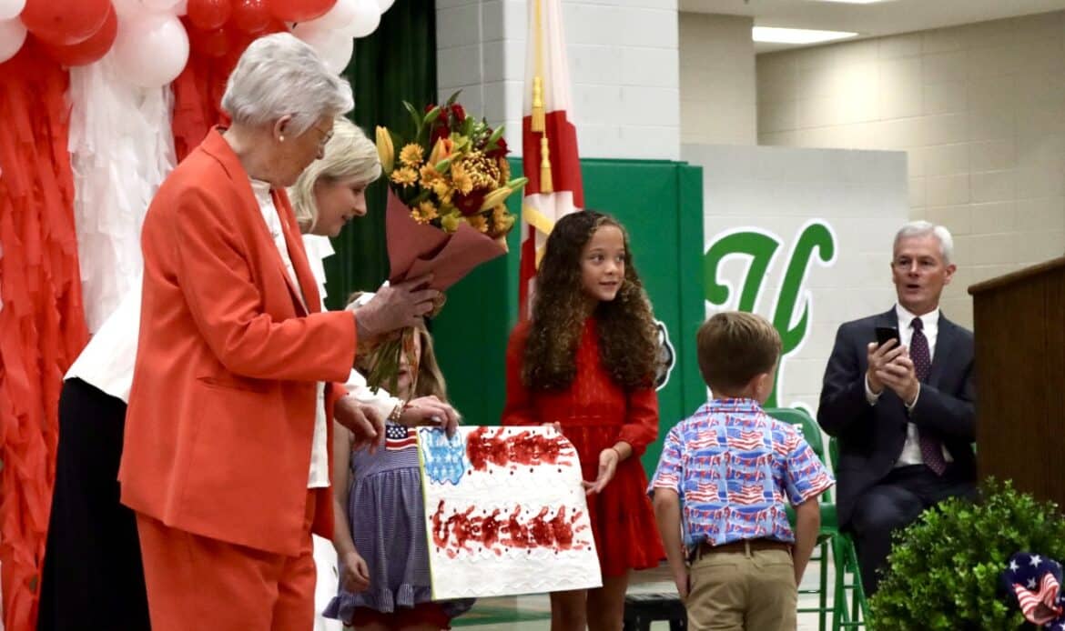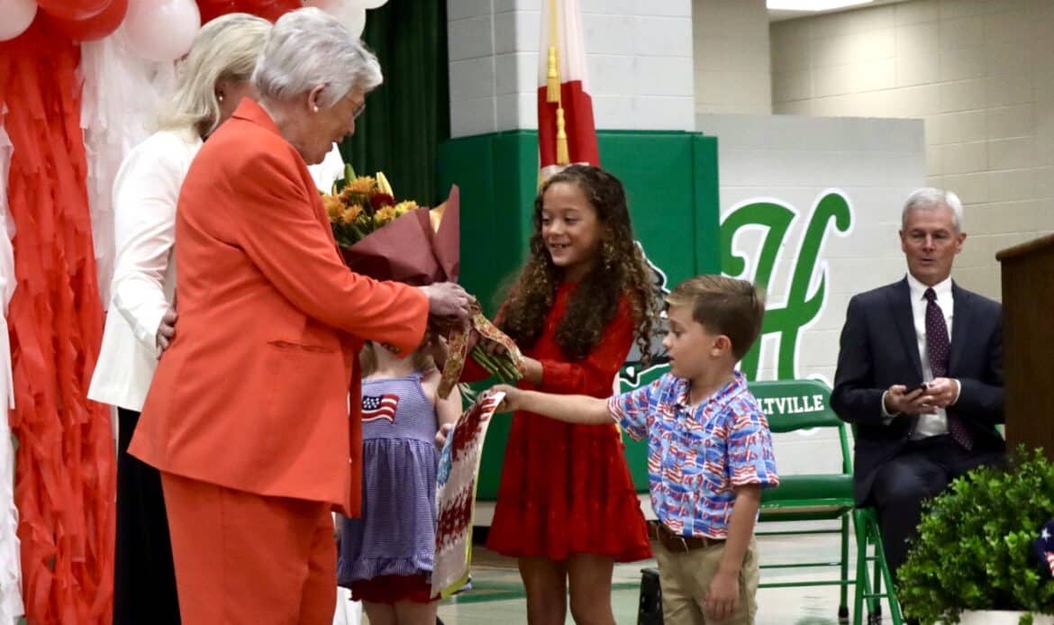 Gov. Kay Ivey visited Holtville Elementary School, Oct. 7, 2025, for a patriotic program celebrating America’s upcoming 250th birthday — along with the values of education, leadership, and school pride.