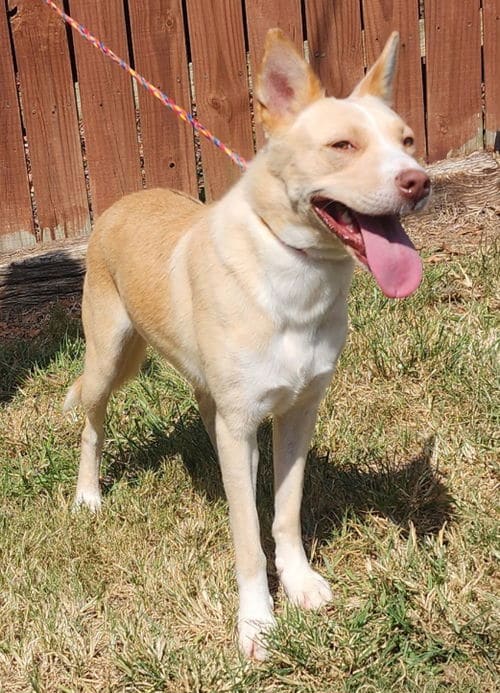 HoneyBun is a two-year old female, about 50 lbs, looks like a possible Heeler/Lab type mix. She is a sweet gal, happy to get attention but also happy to do her own thing. Saying no to young children as she takes treats from us like a hungry piranha so have to watch your fingers. Good with other dogs, will do best with room to hang out outside when she wants to do her own thing. Active gal.