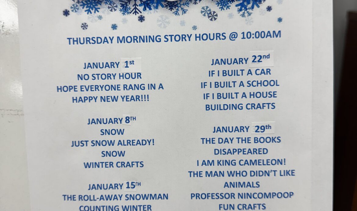 On Thursday, Oct. 30th, 2025, the Millbrook Public Library had its weekly story hour. This week, children dressed up in their Halloween costumes for the story hour and trick-or-treated around the library.